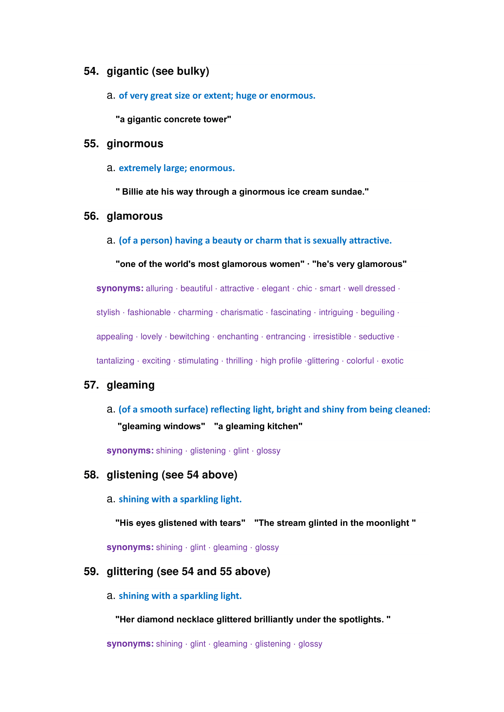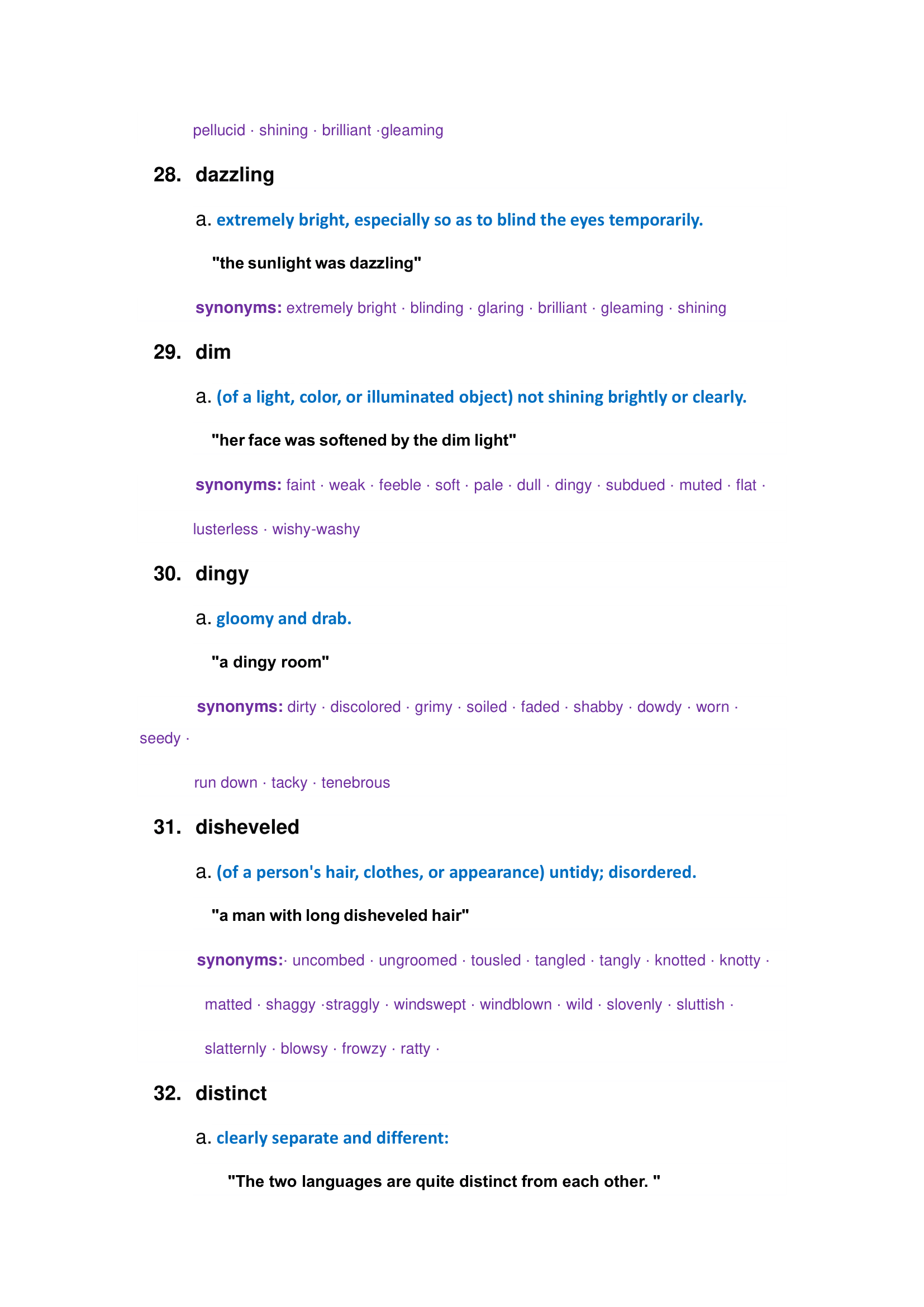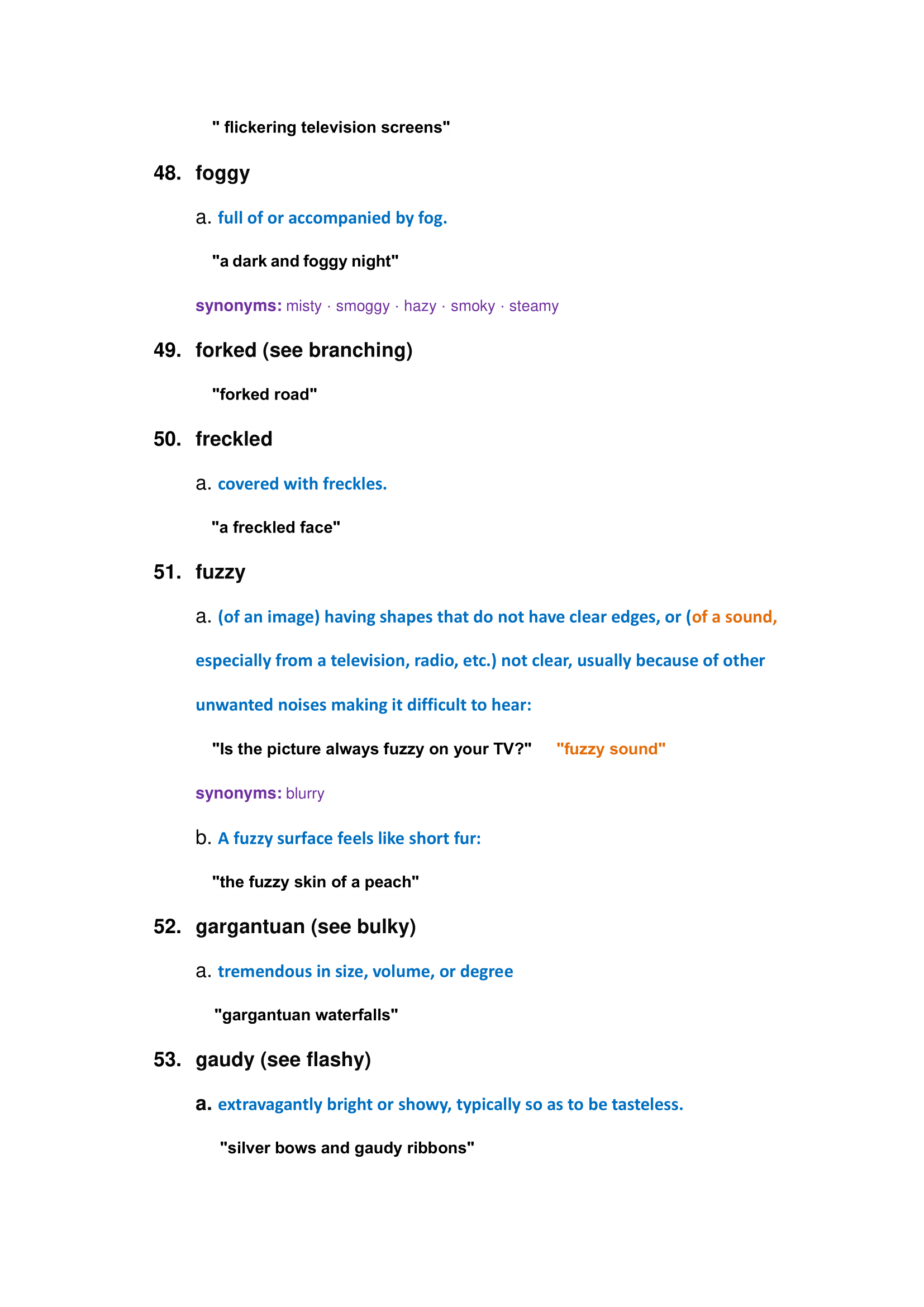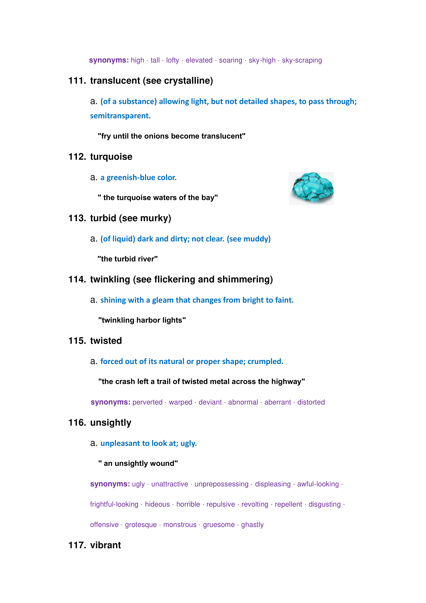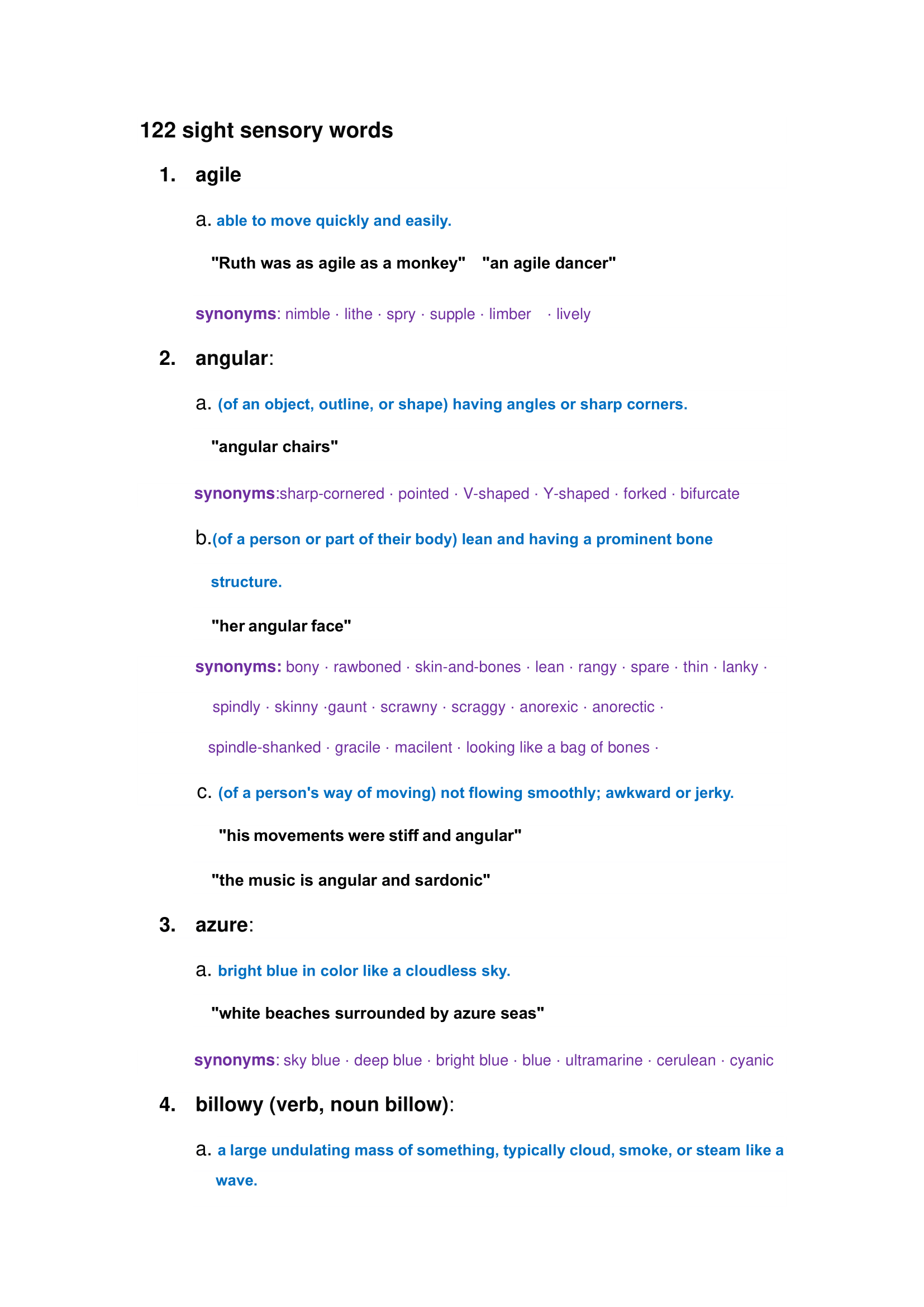 Words related to visually describe the appearance of something (its color, size, shape, and so on).