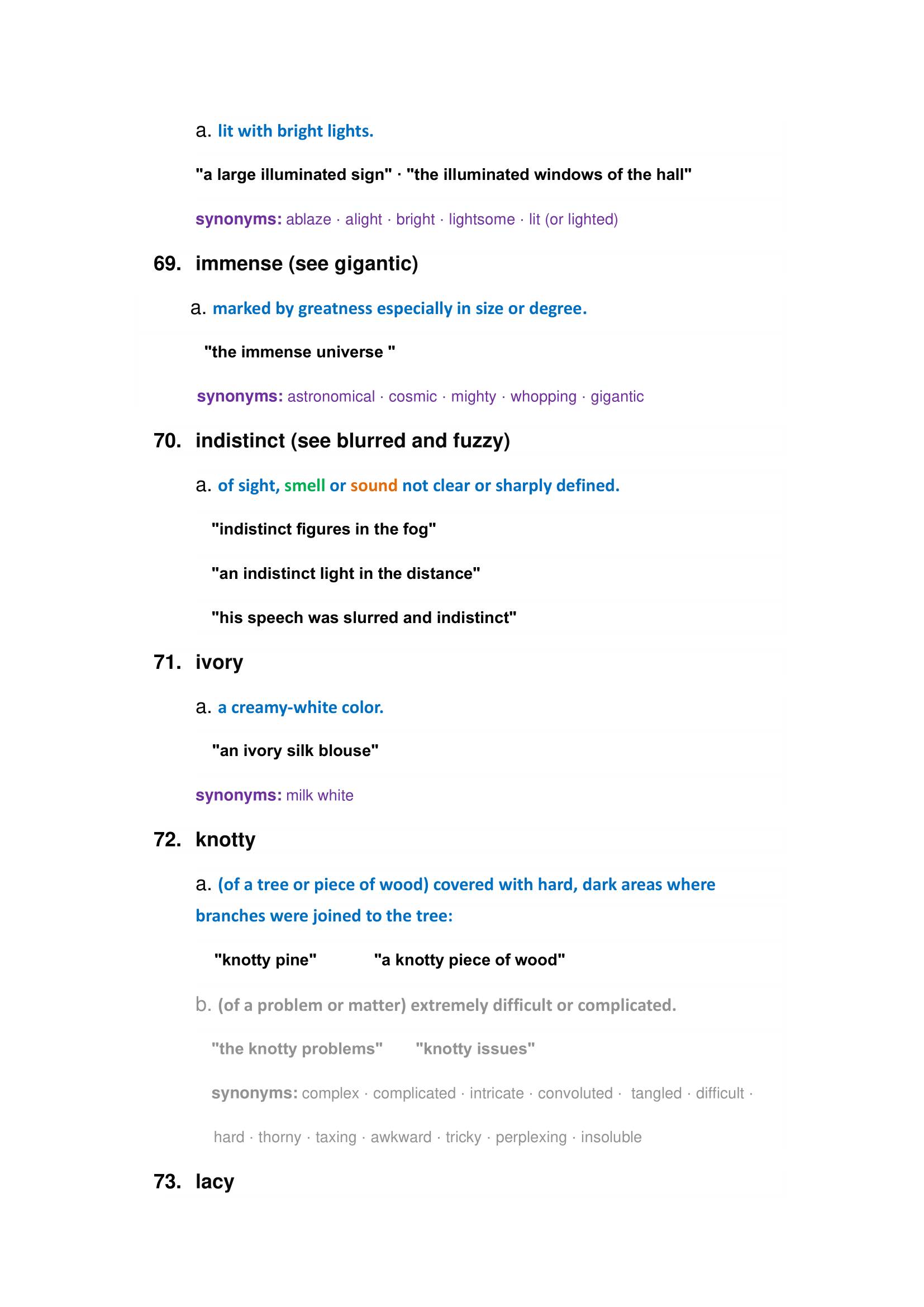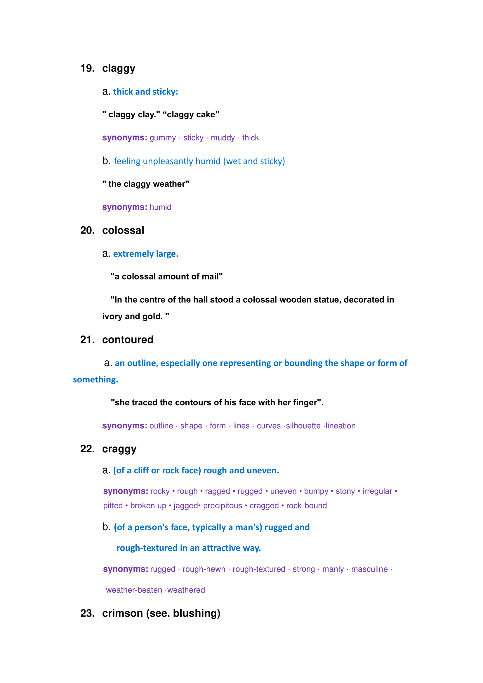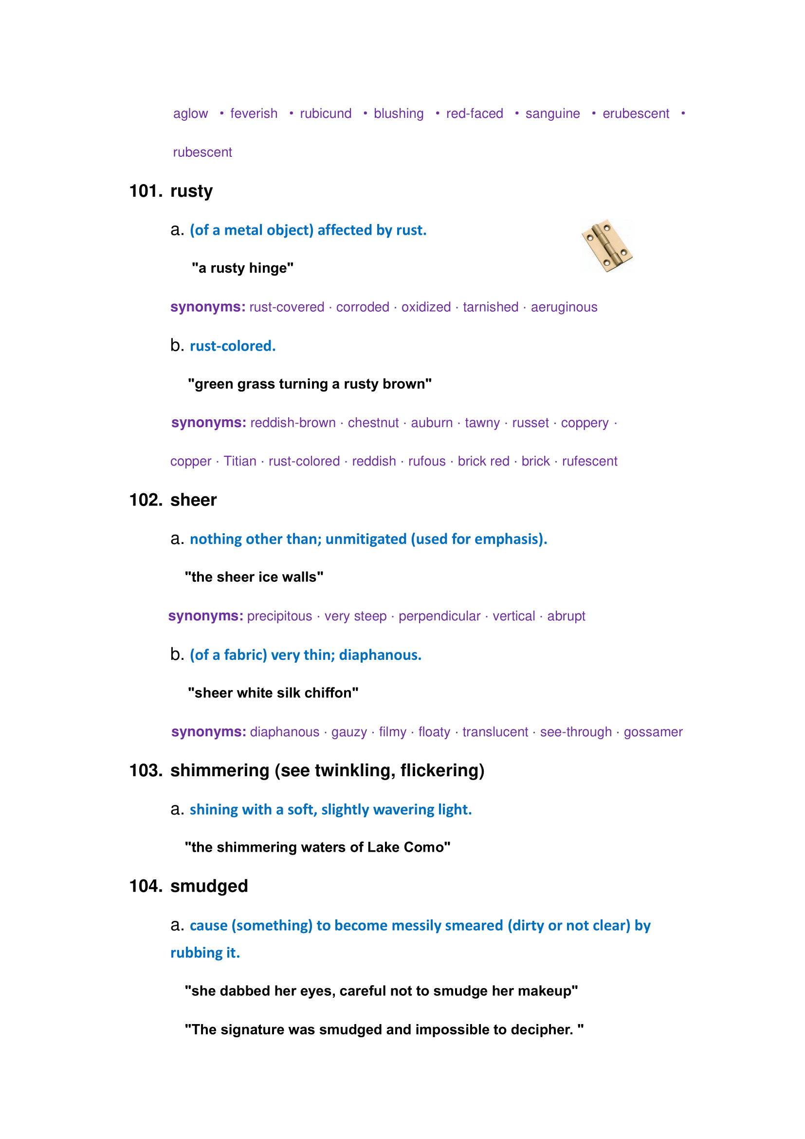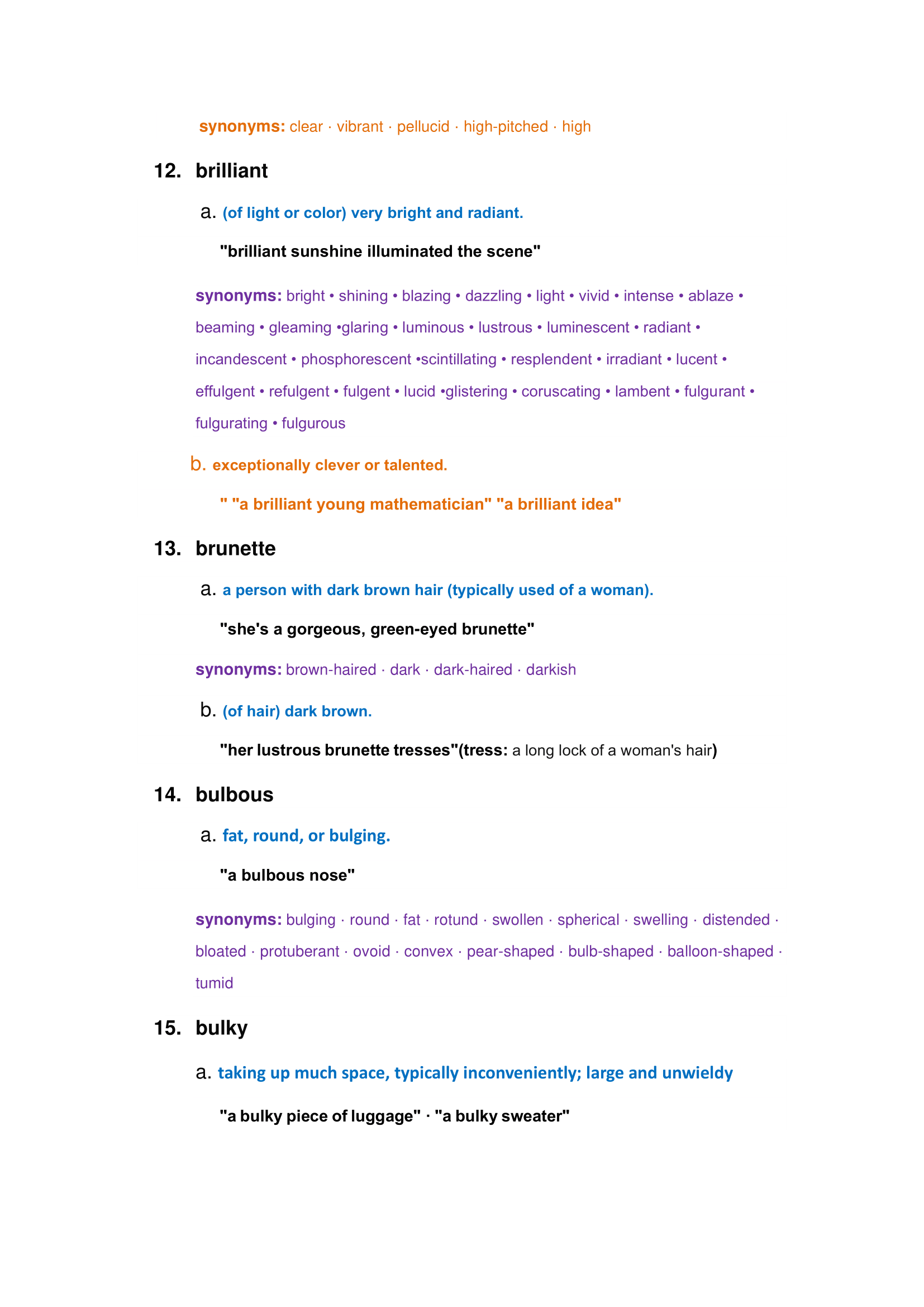 Words related to visually describe the appearance of something (its color, size, shape, and so on).
