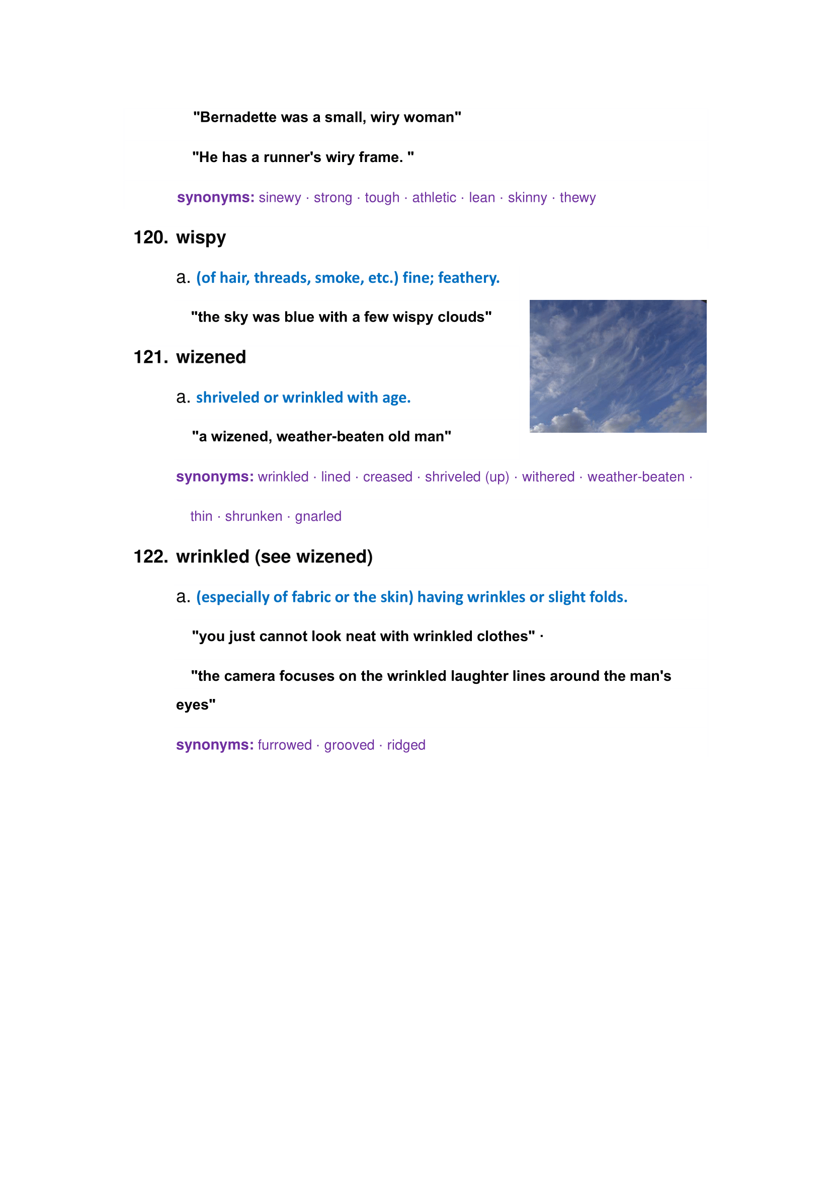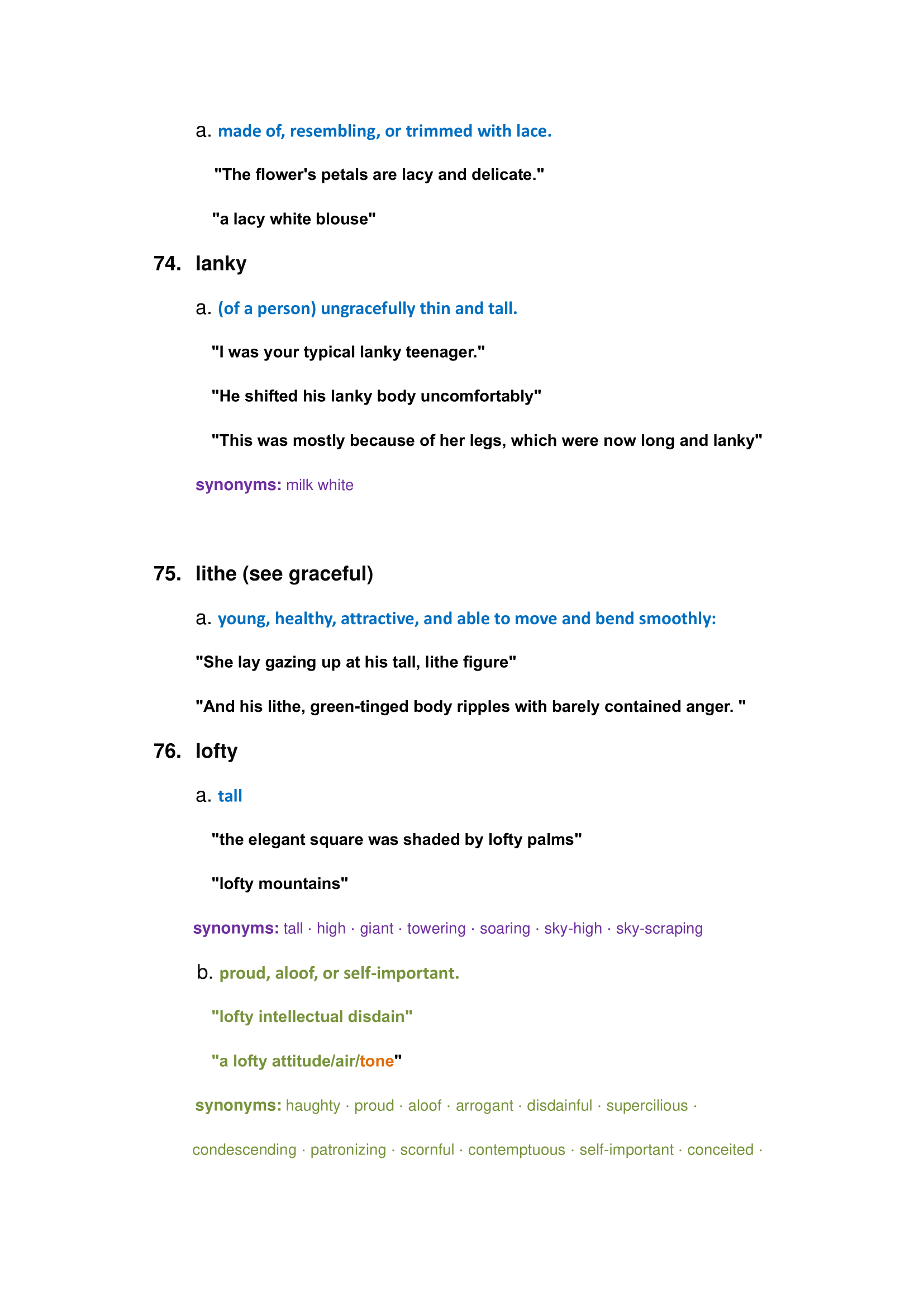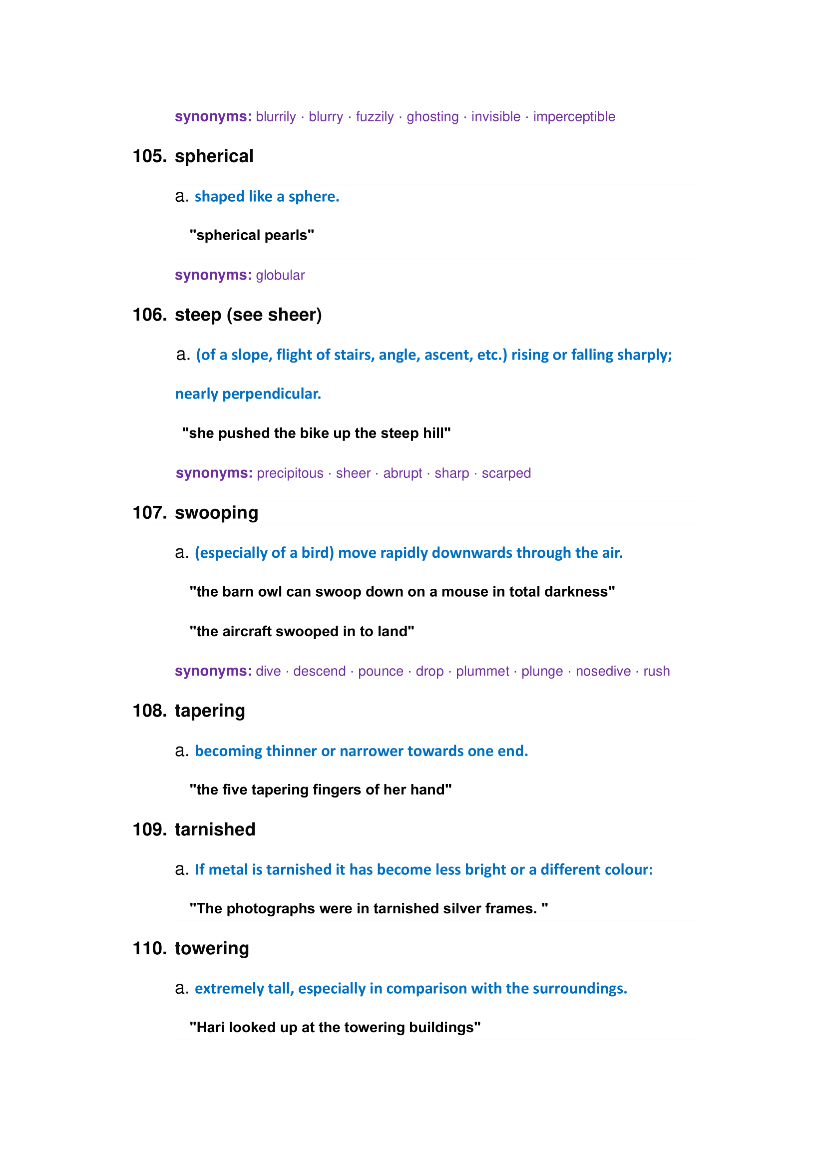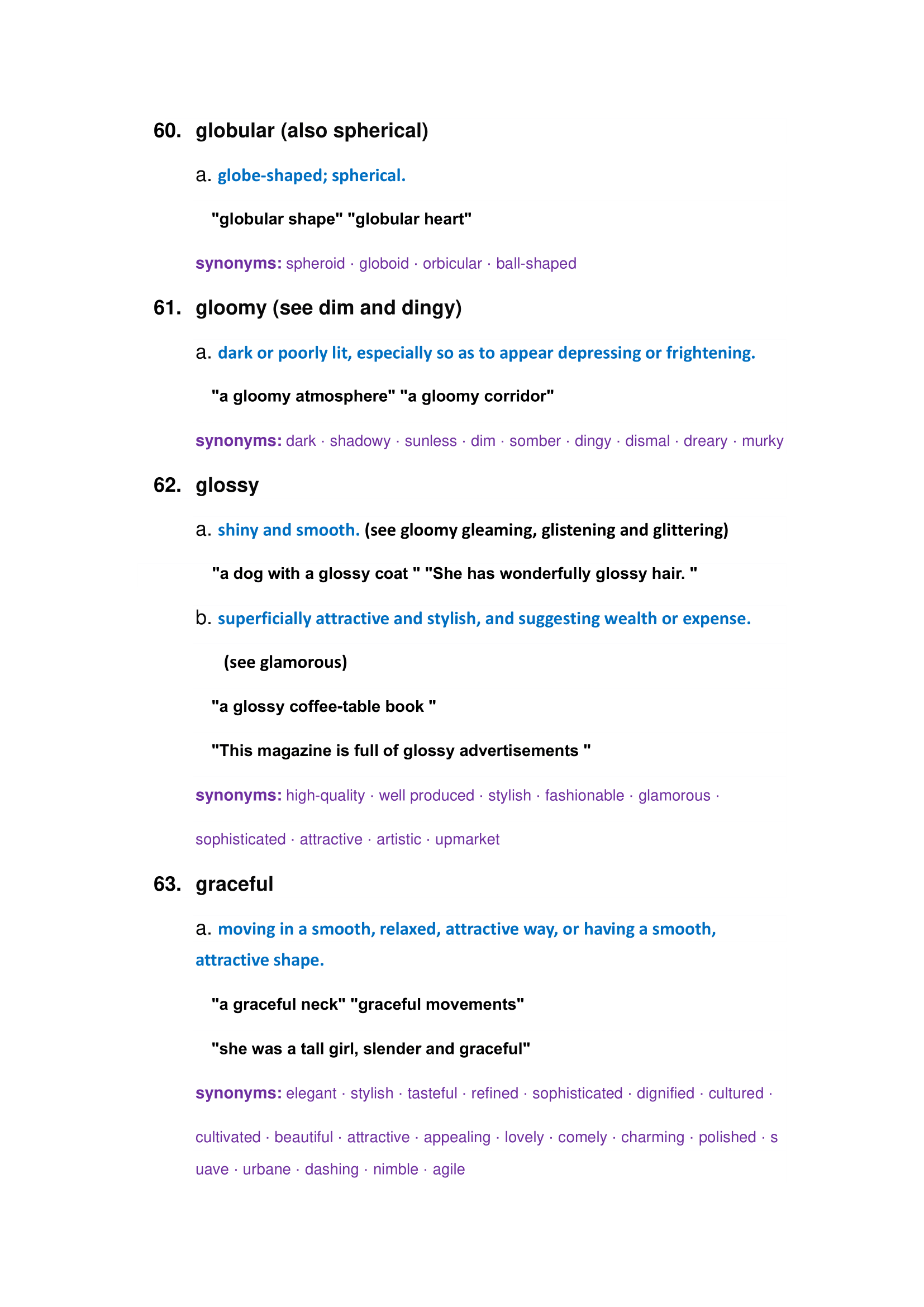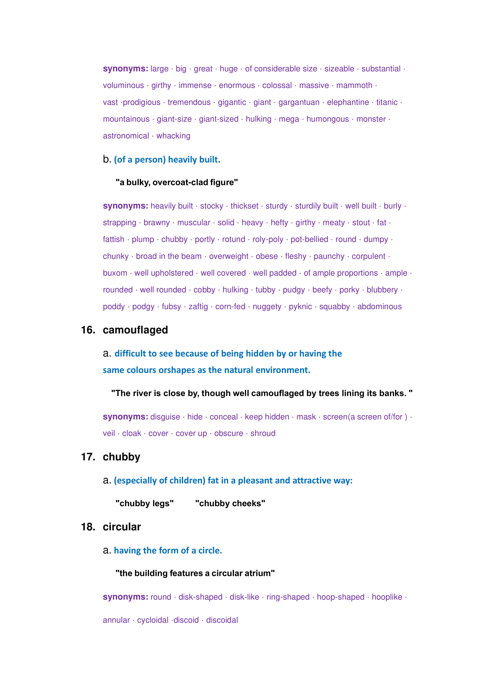 Words related to visually describe the appearance of something (its color, size, shape, and so on).