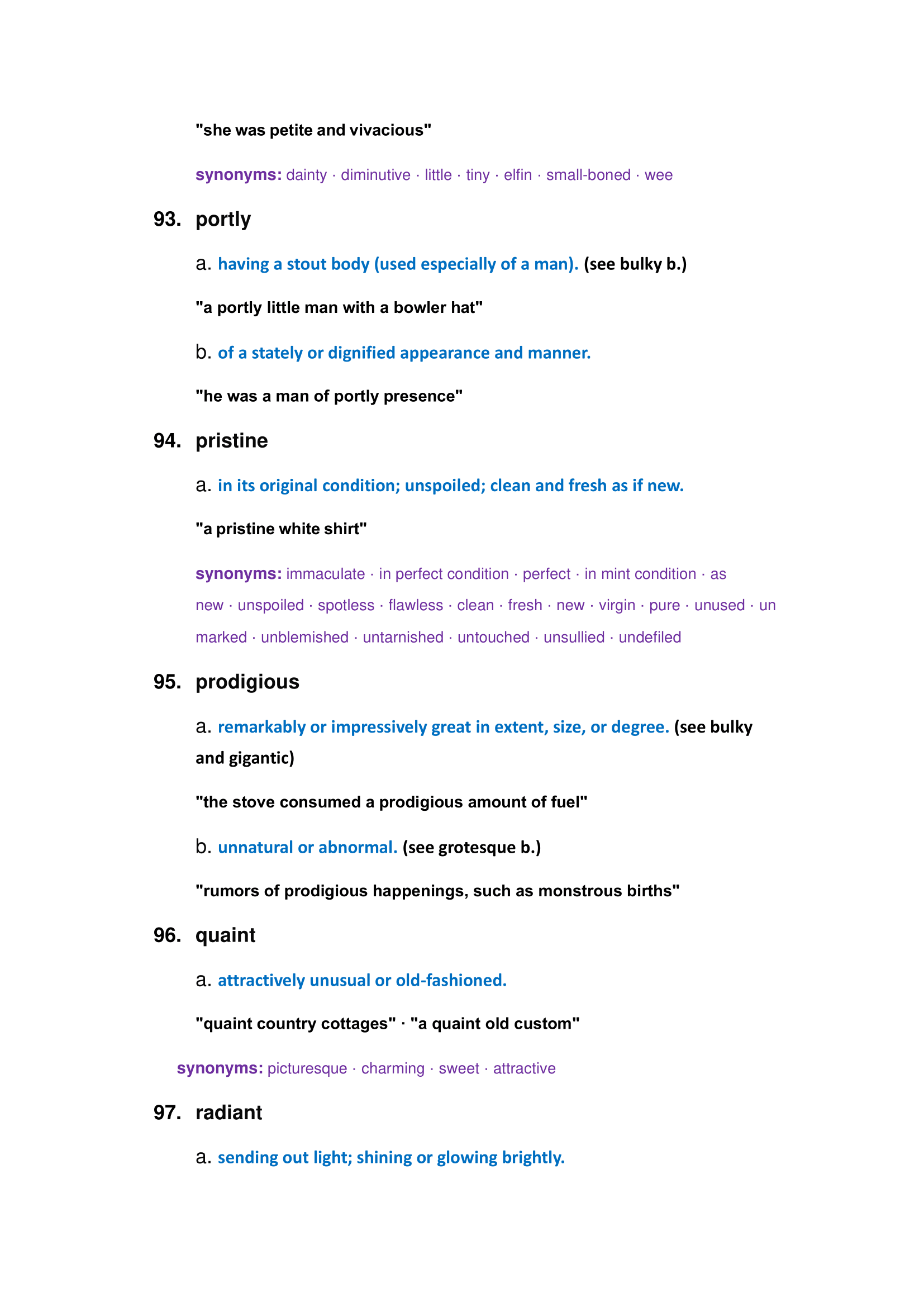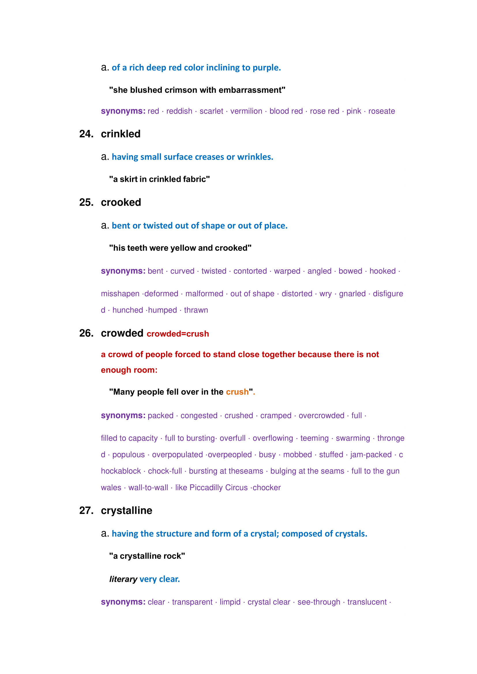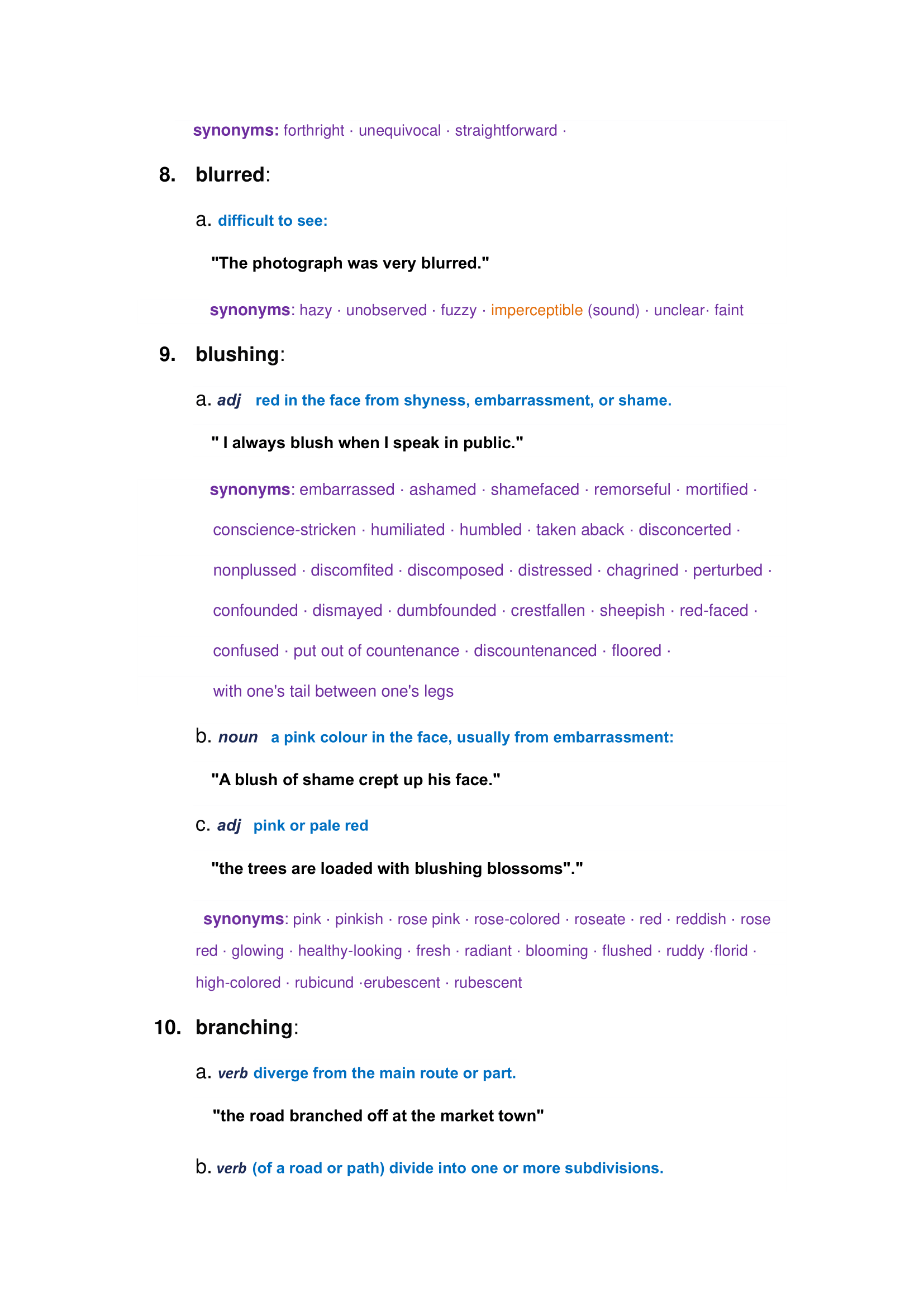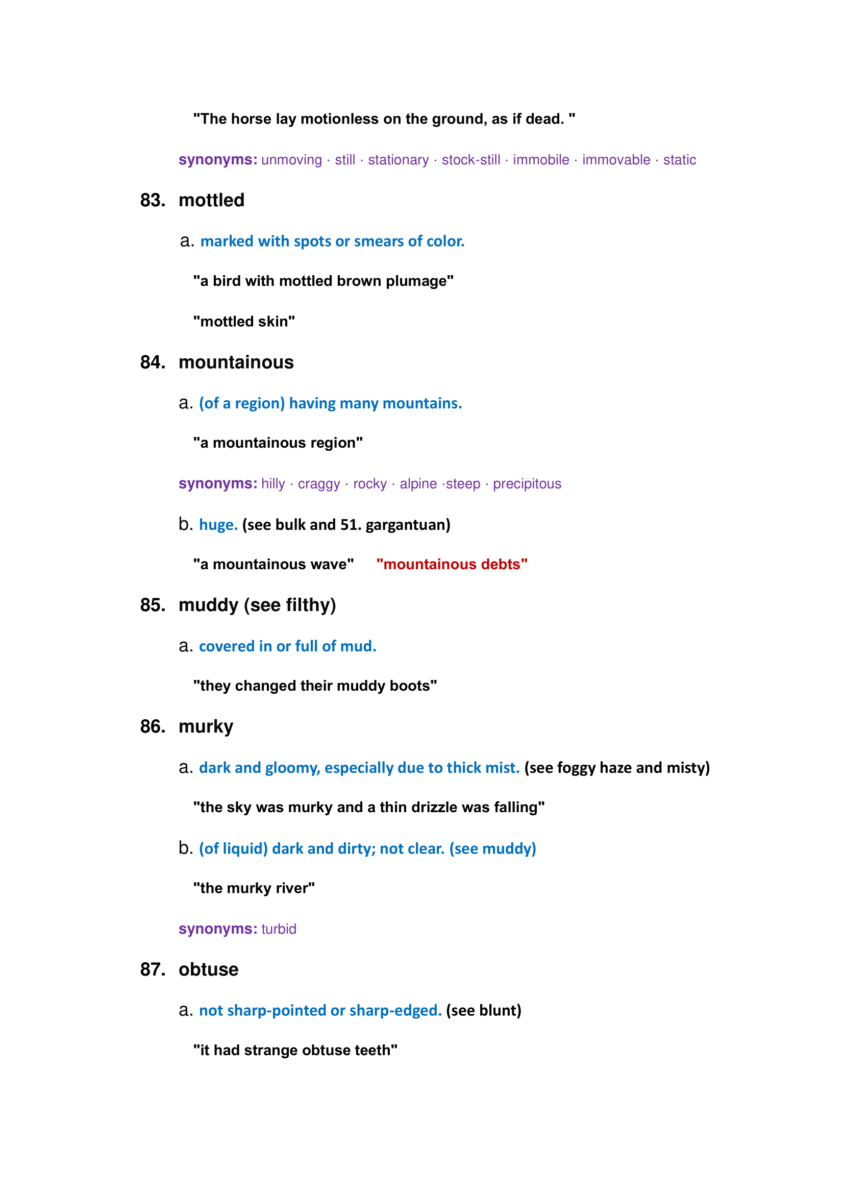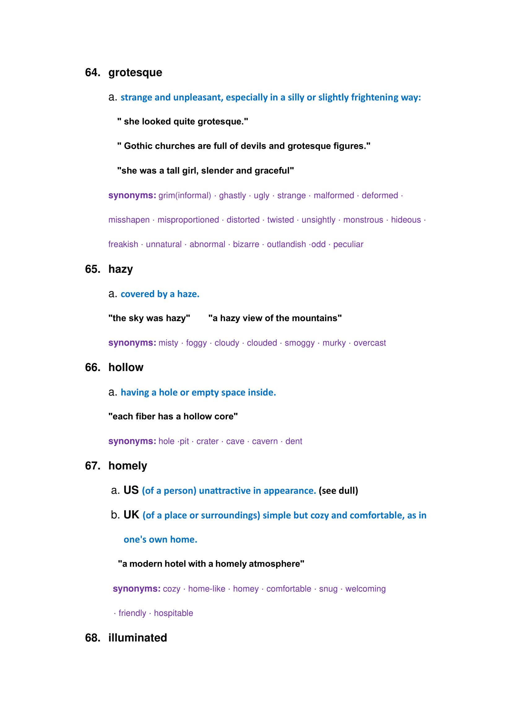 Words related to visually describe the appearance of something (its color, size, shape, and so on).