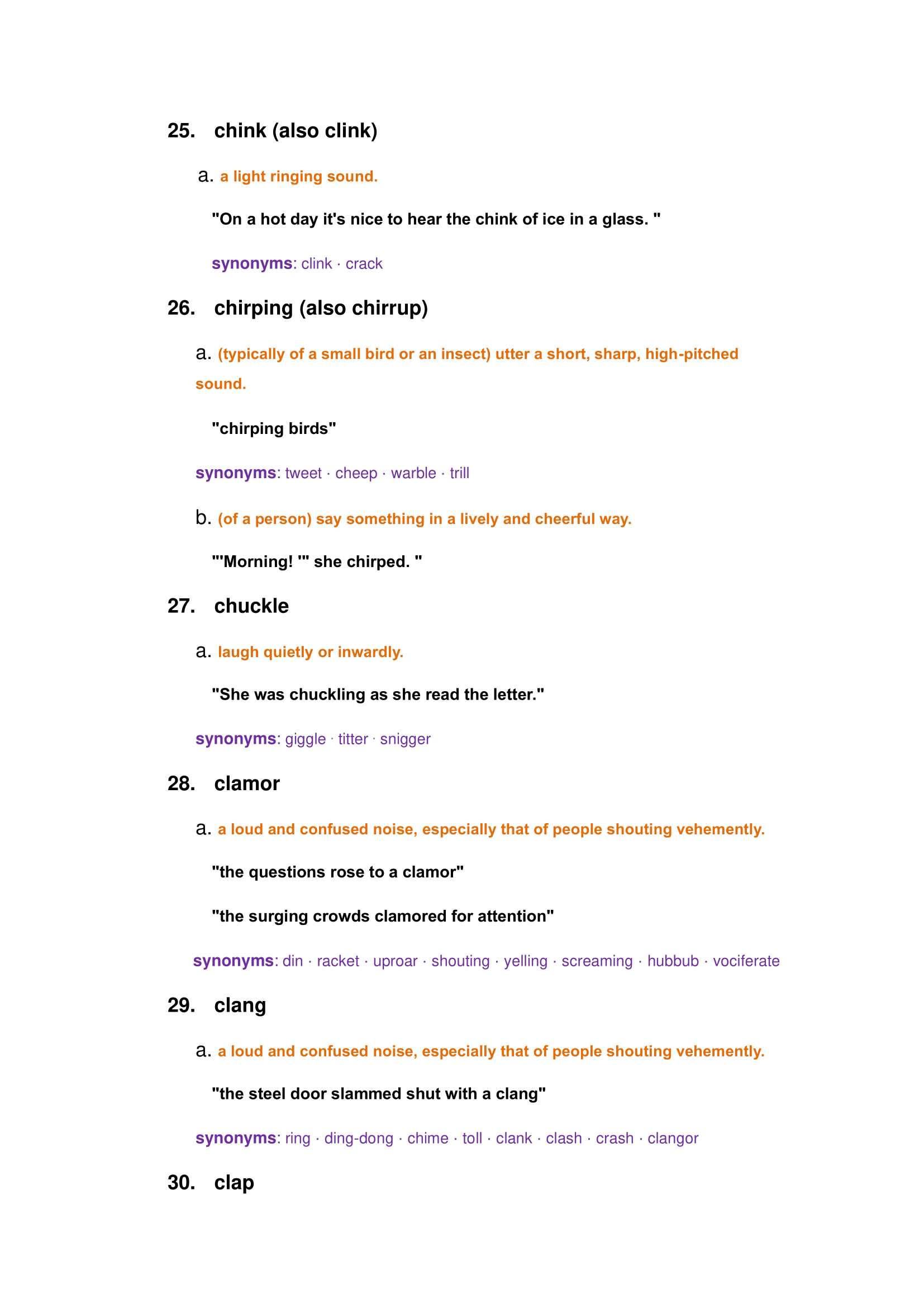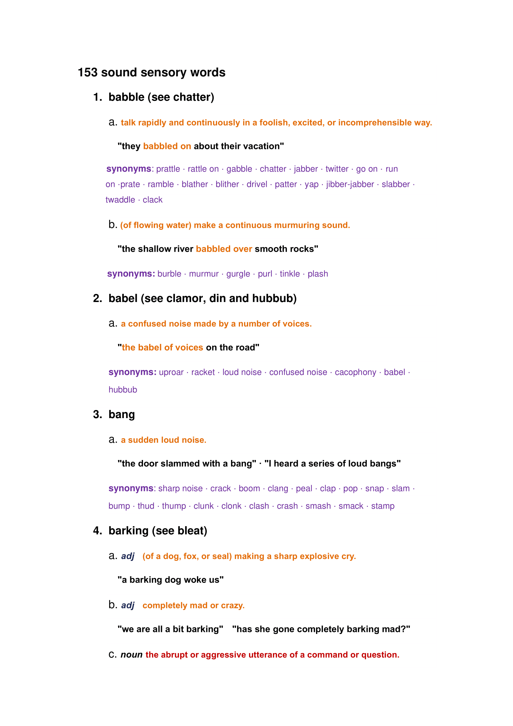 And, although sensory details are often adjectives, sound sensory words are mostly nouns and verbs.