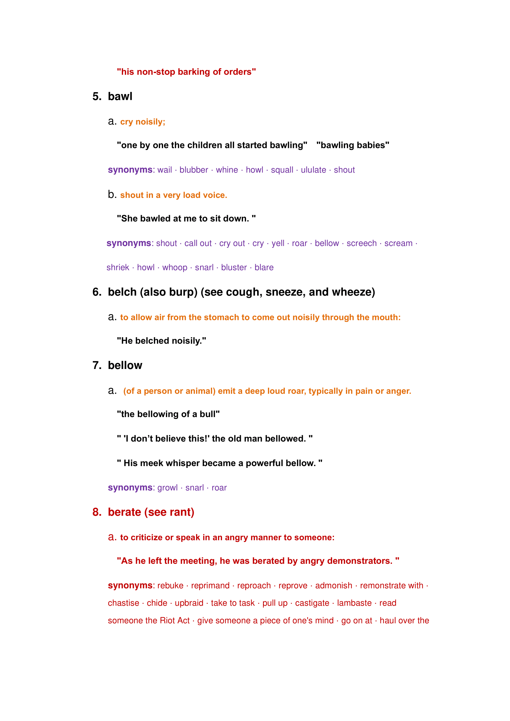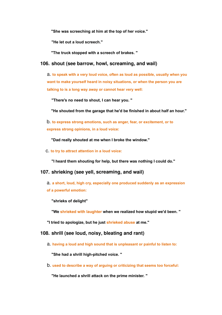 Description words of human behaviors: cheer, whooping, scream, wail, hiccup, sneeze, yell, etc.