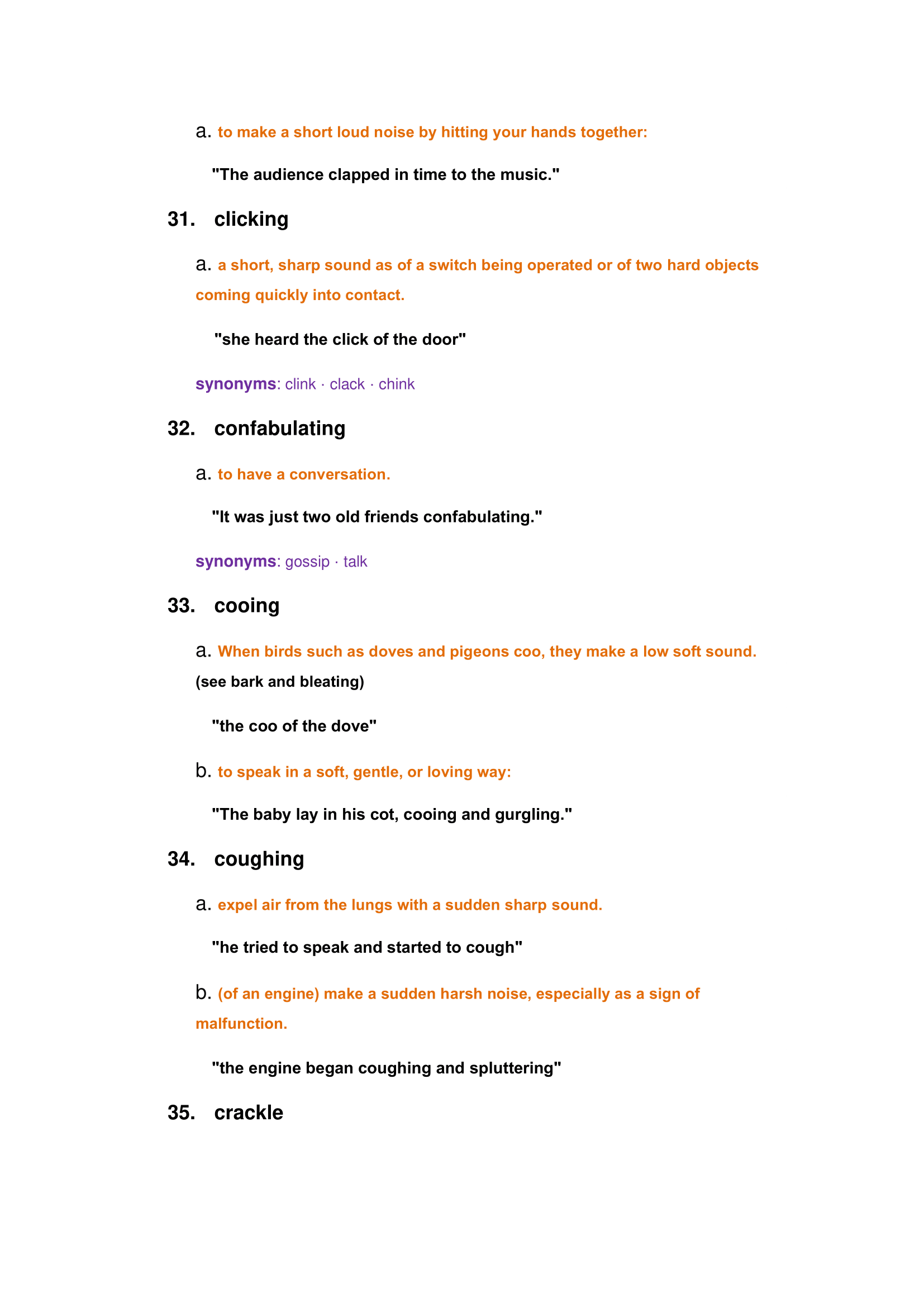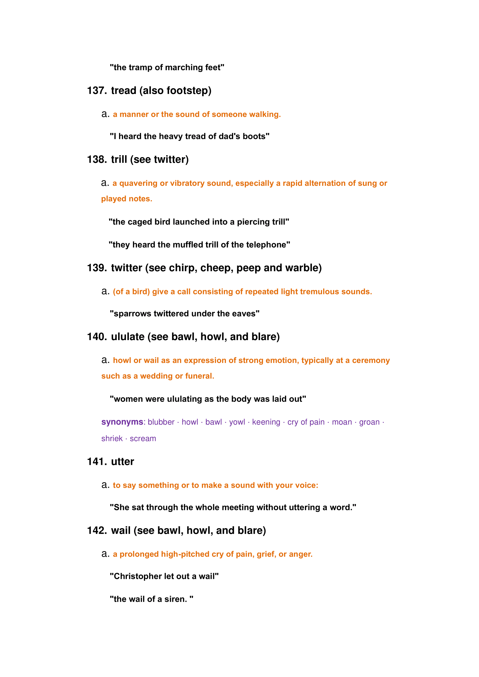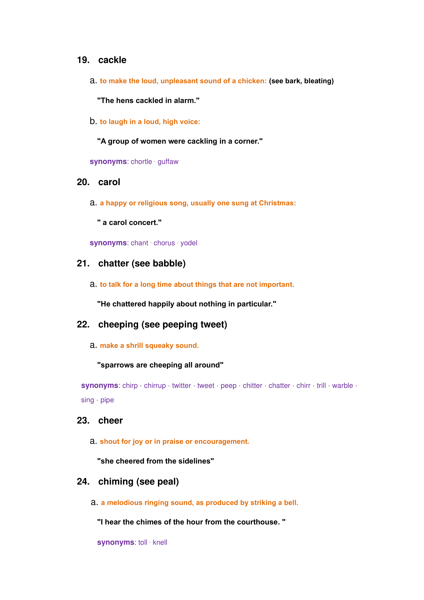 Examples of hearing words: