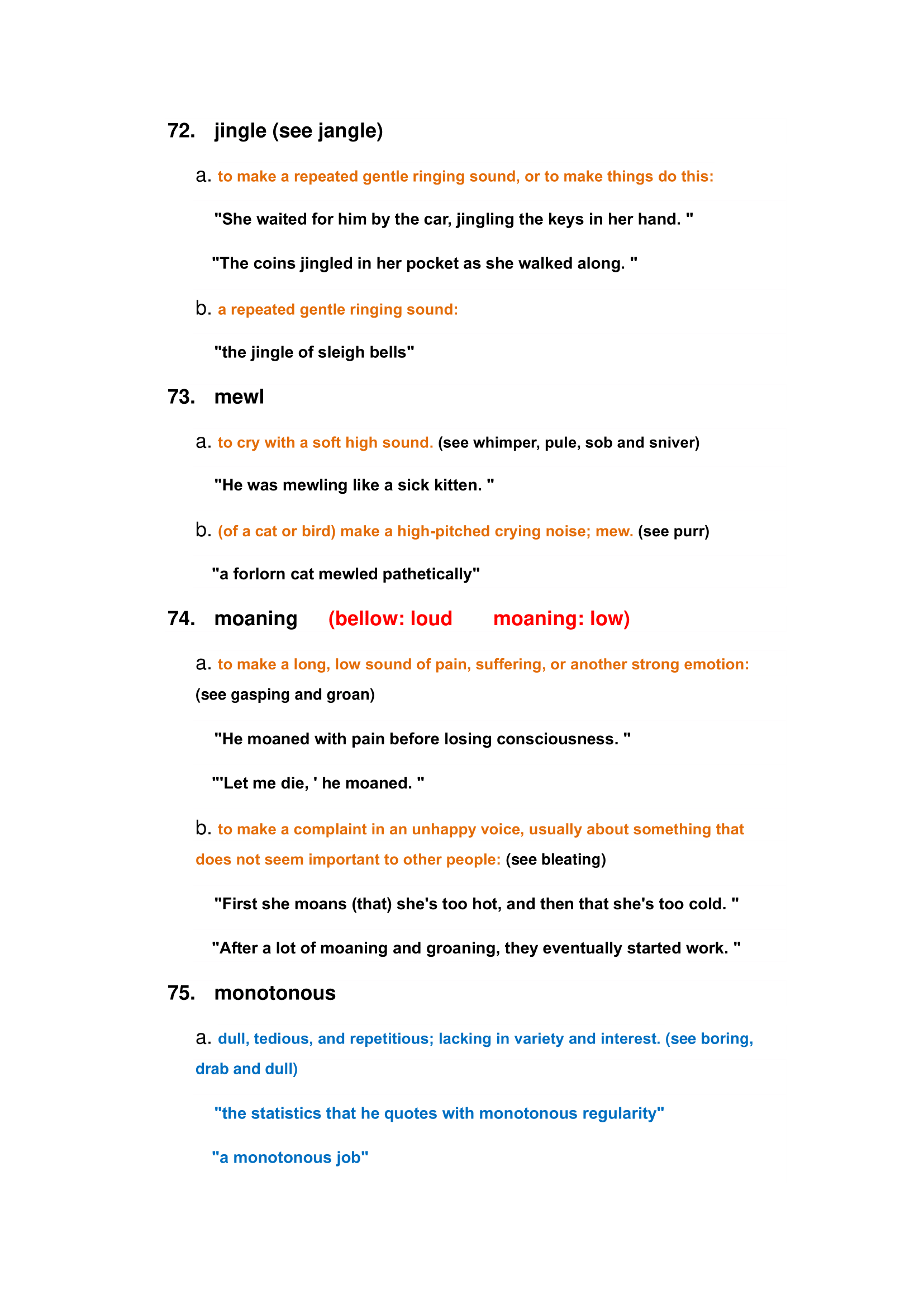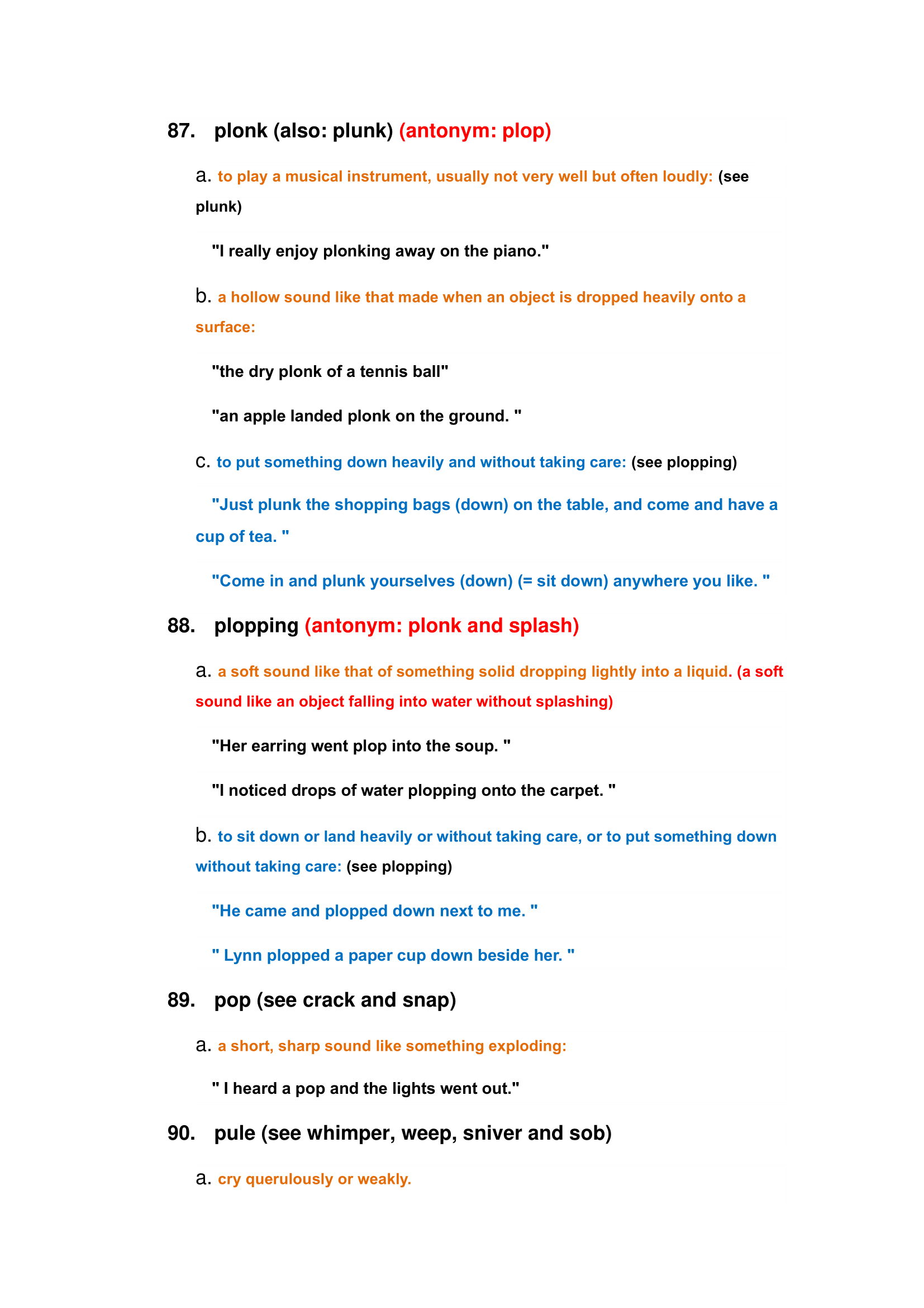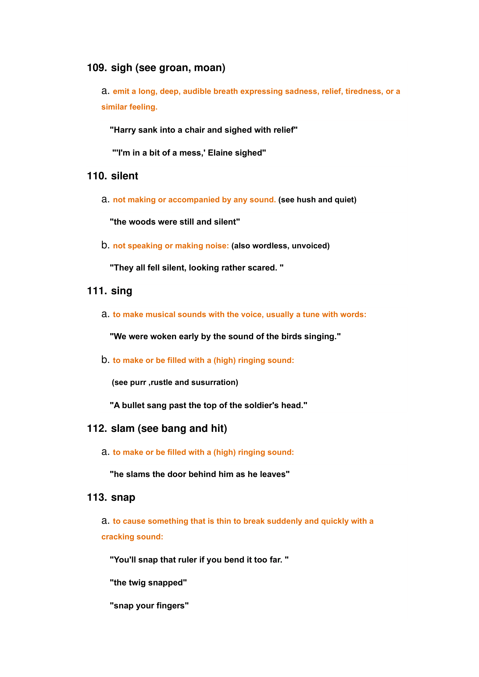 Examples of hearing words: