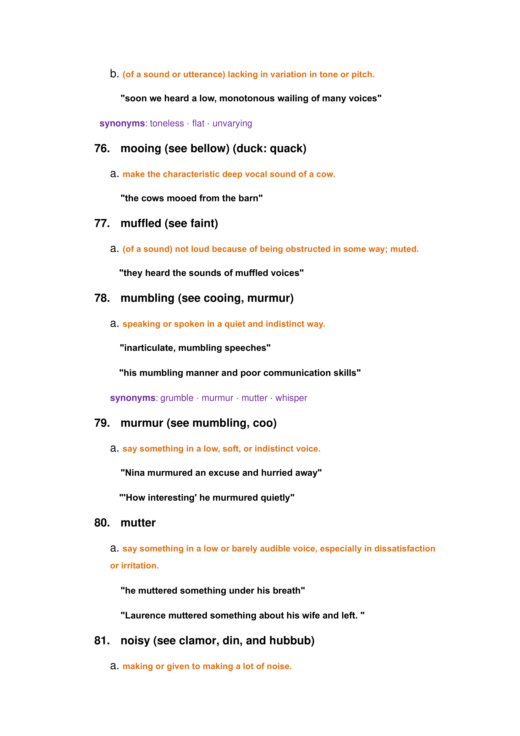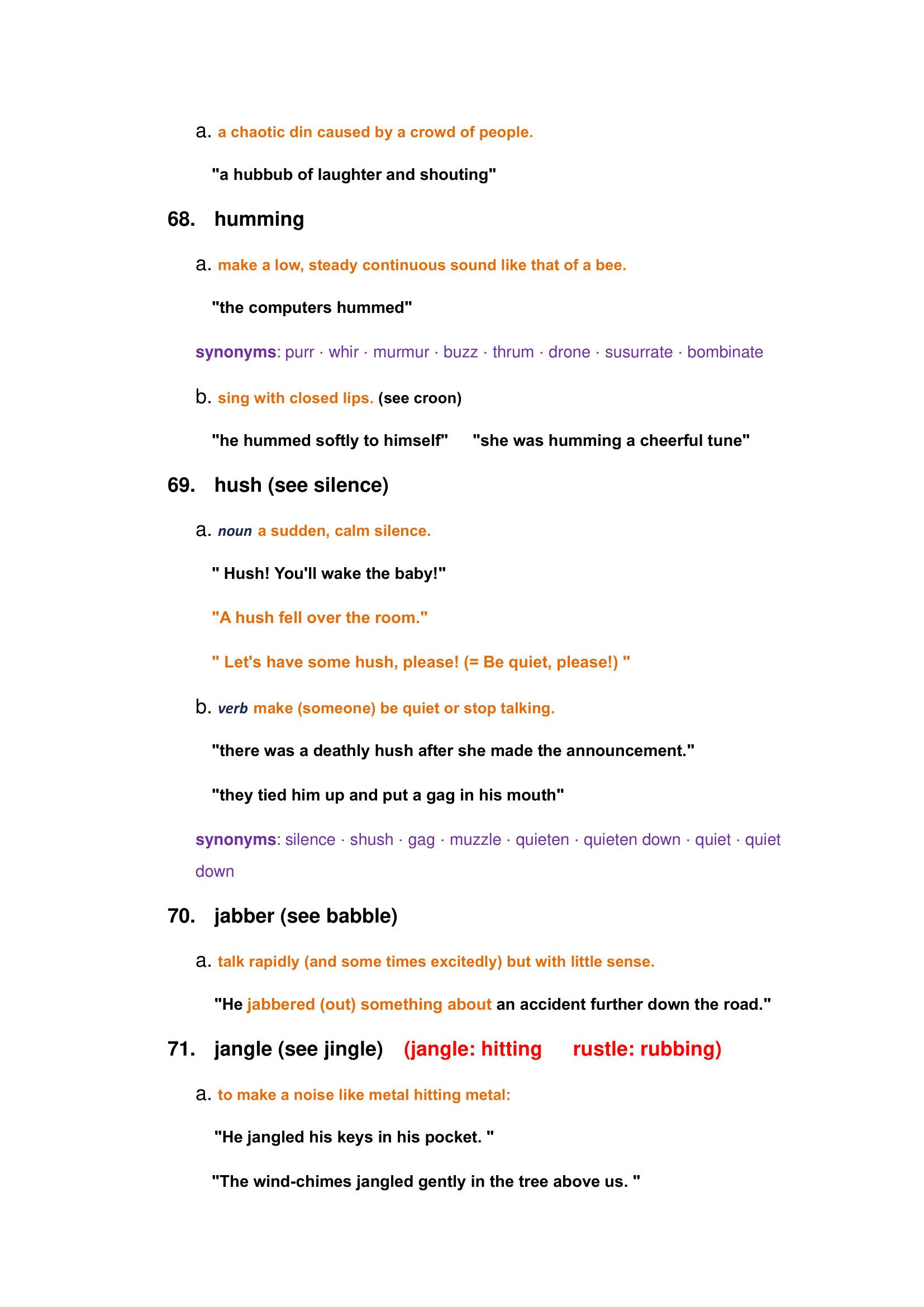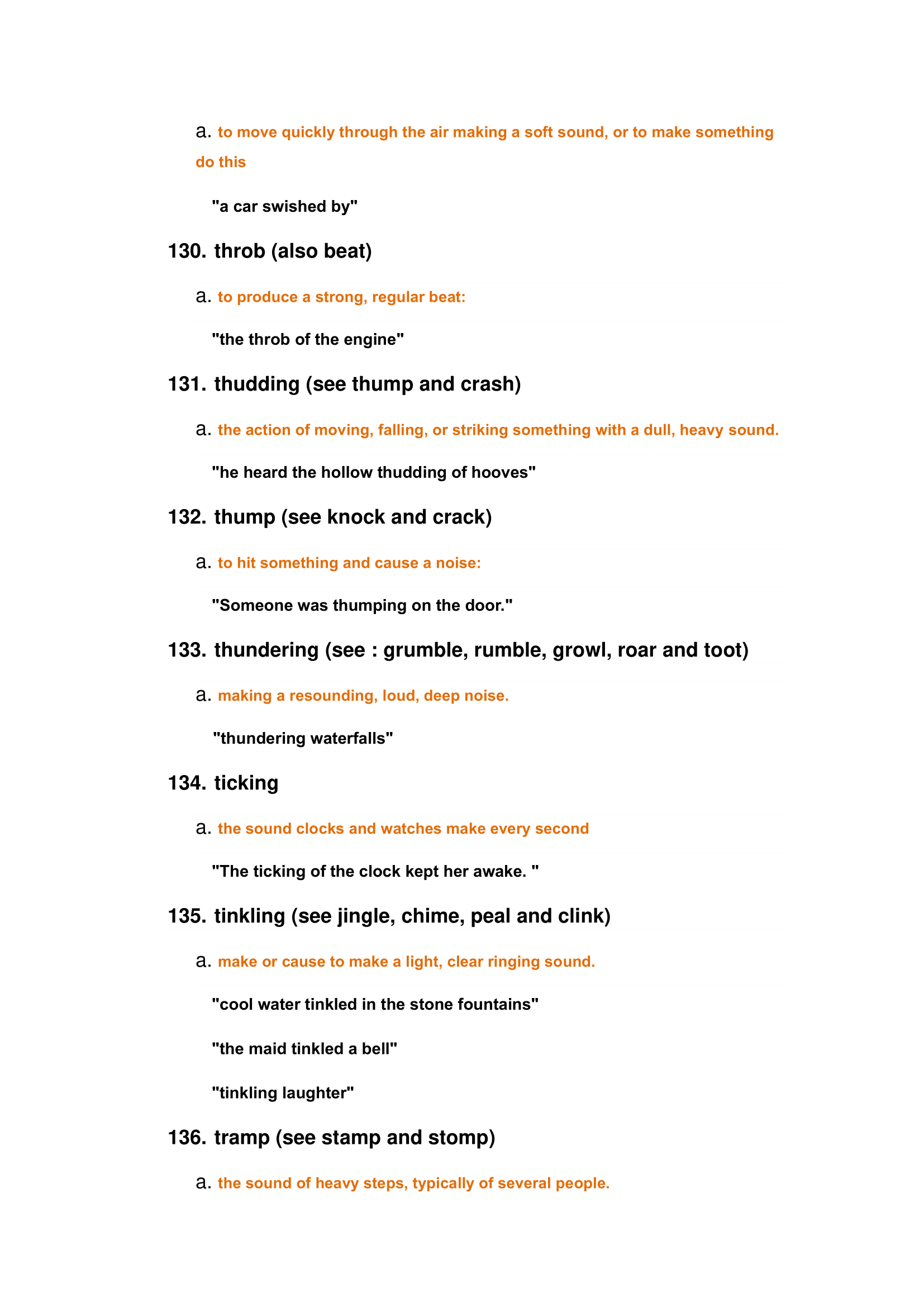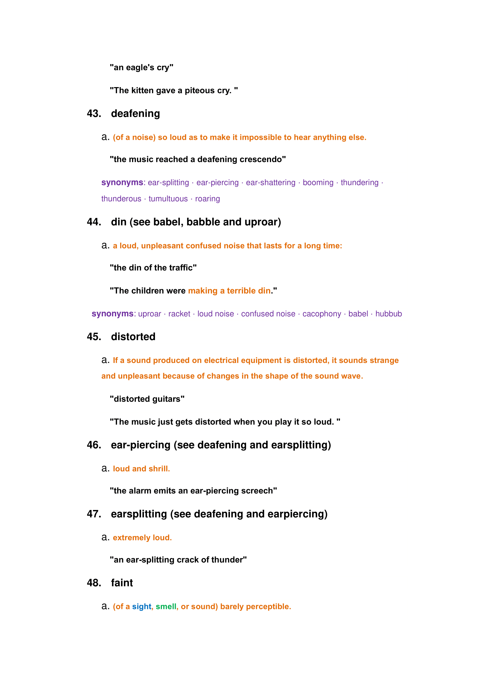 Characteristics of general noise: loud, faint, whisper, boom, silence, ear-piercing, rumble, etc.