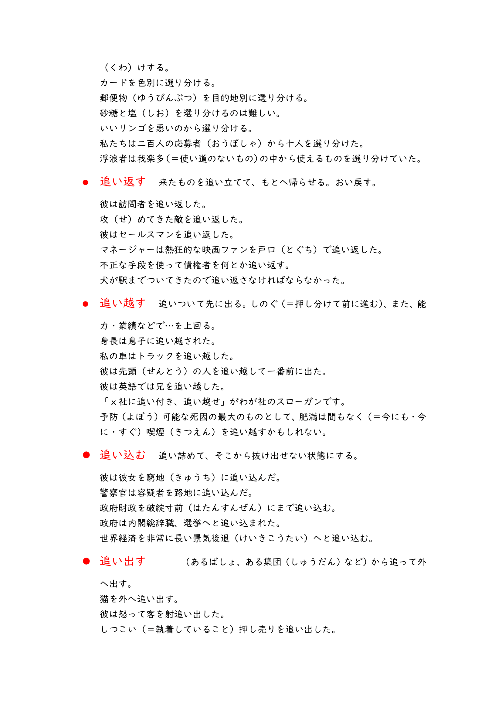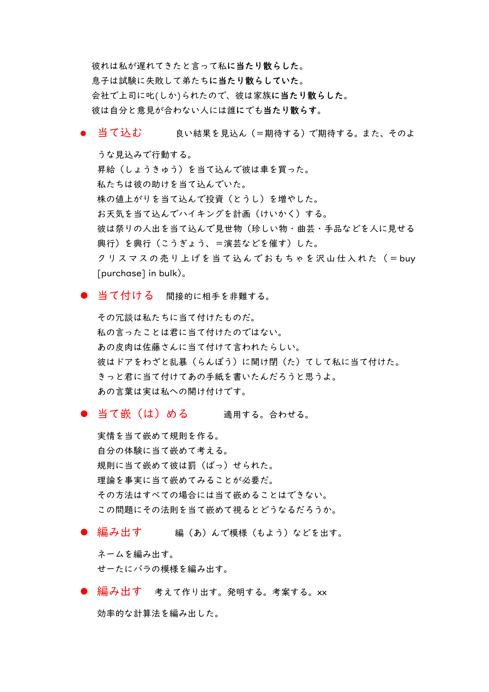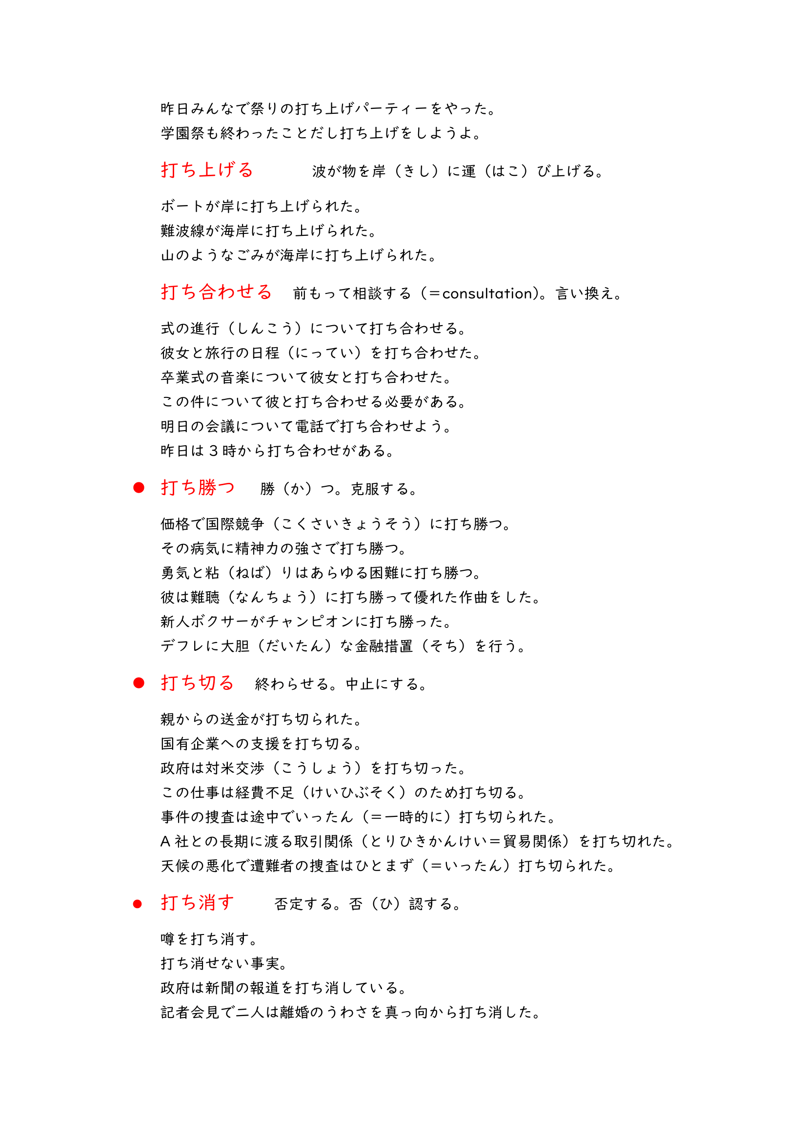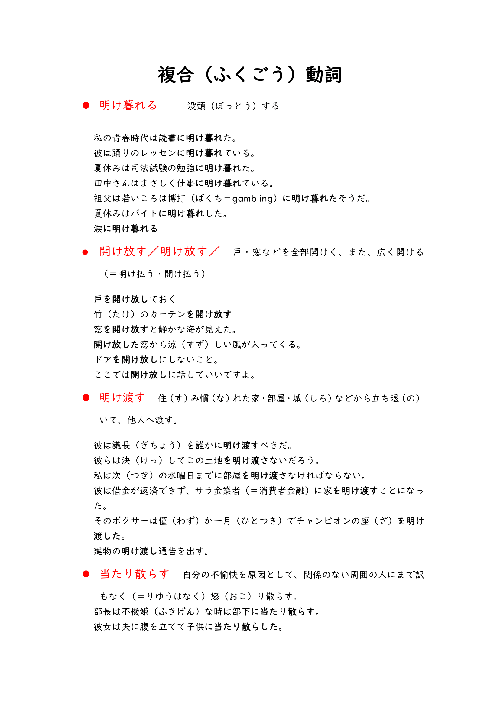 These vocabulary lists are about Japanese compound verbs. When you learn Japanese you would see a lot of verbs like “i” verbs or “u” verbs, they are basic, but if you read more Japanese materials there would be a lot of compound verbs which look like “光り輝く”,”投げ入れる” and “書き上げる”.