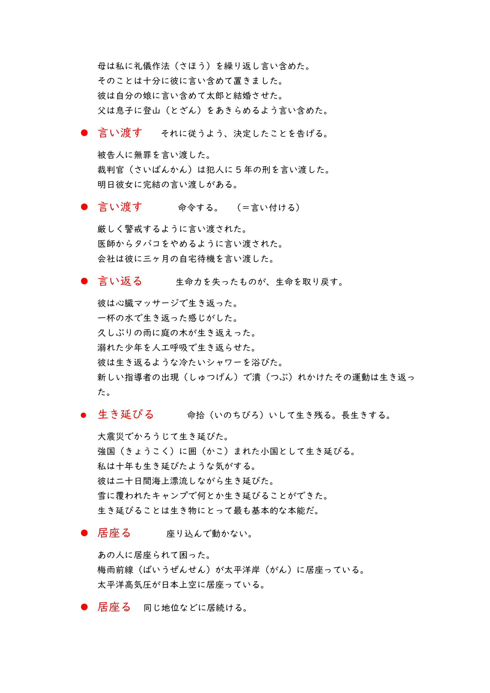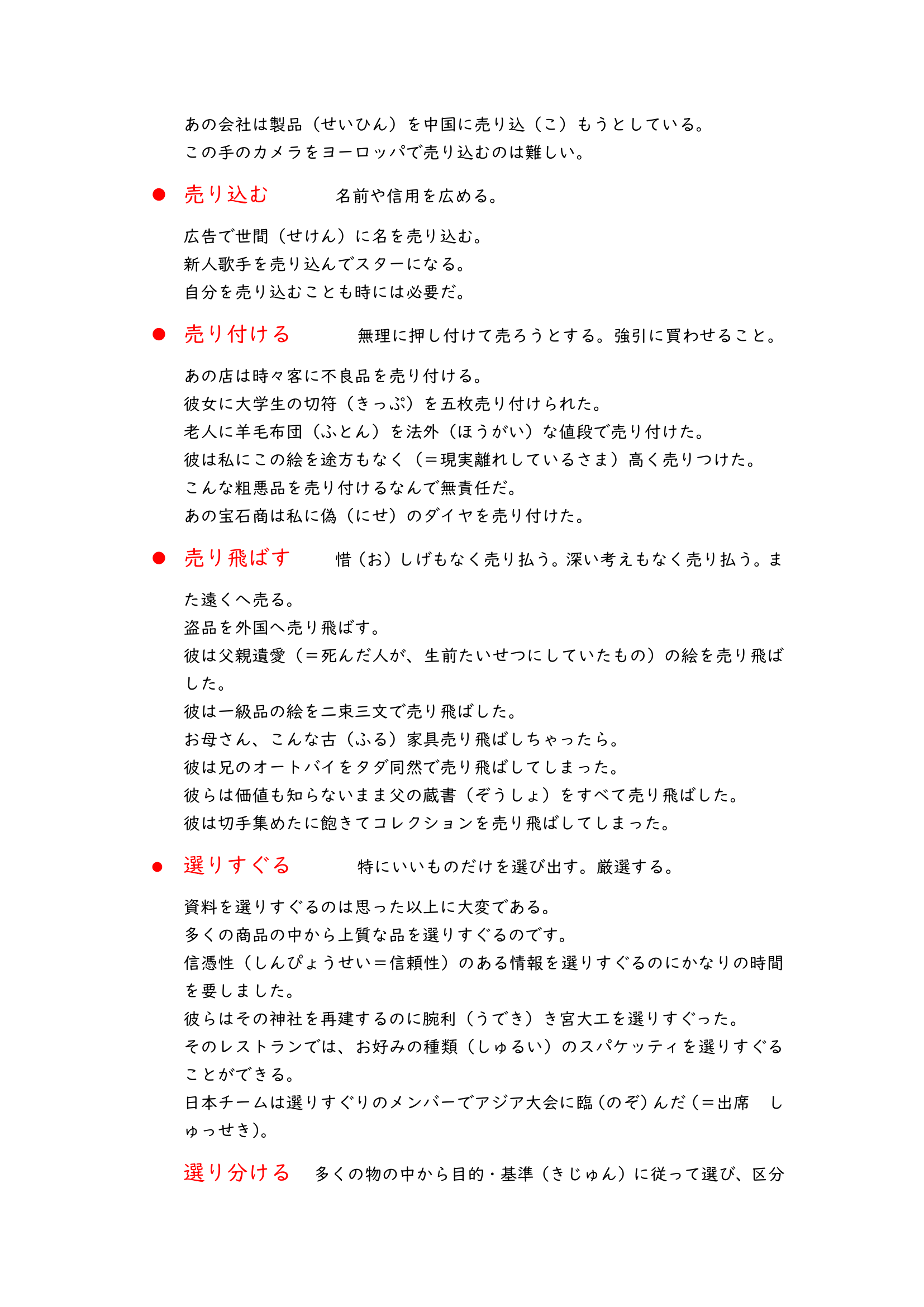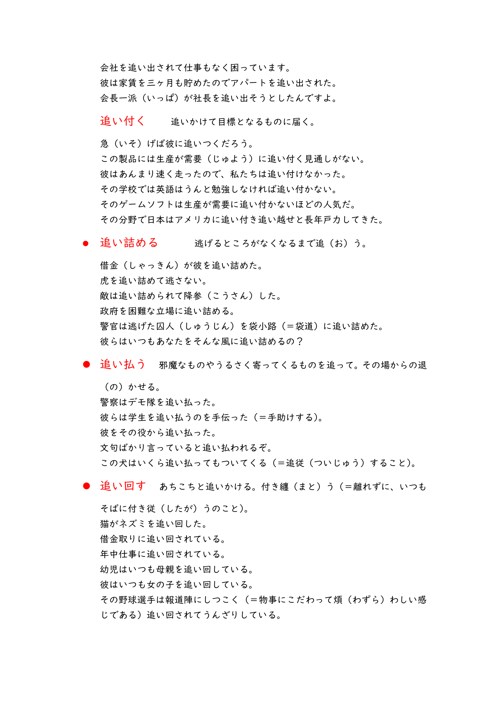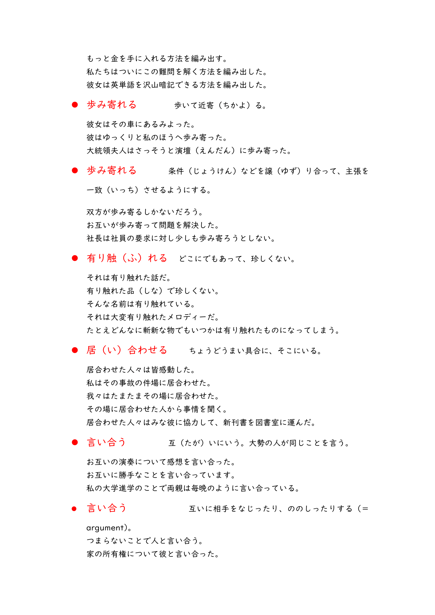 These vocabulary lists are about Japanese compound verbs. When you learn Japanese you would see a lot of verbs like “i” verbs or “u” verbs, they are basic, but if you read more Japanese materials there would be a lot of compound verbs which look like “光り輝く”,”投げ入れる” and “書き上げる”.