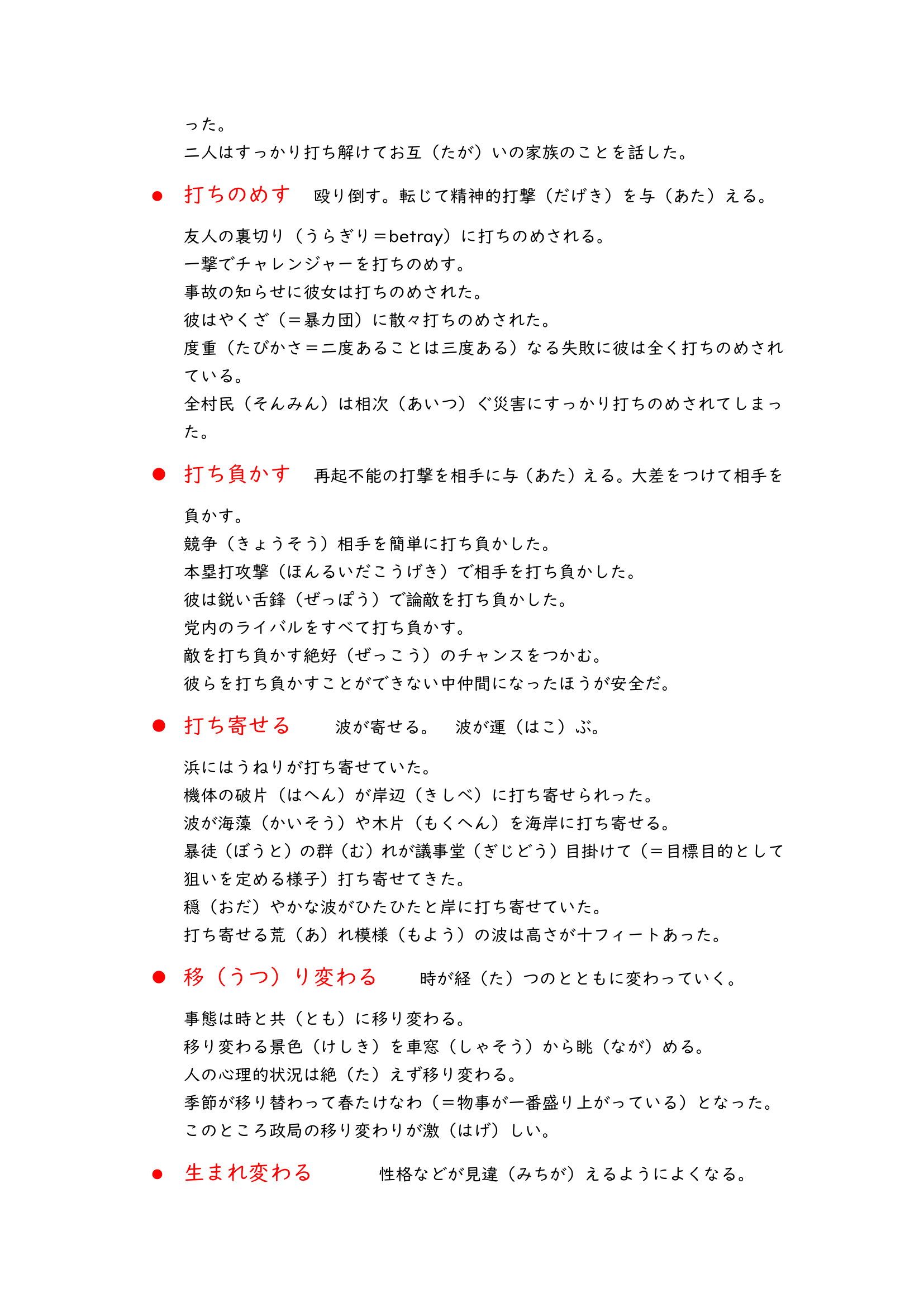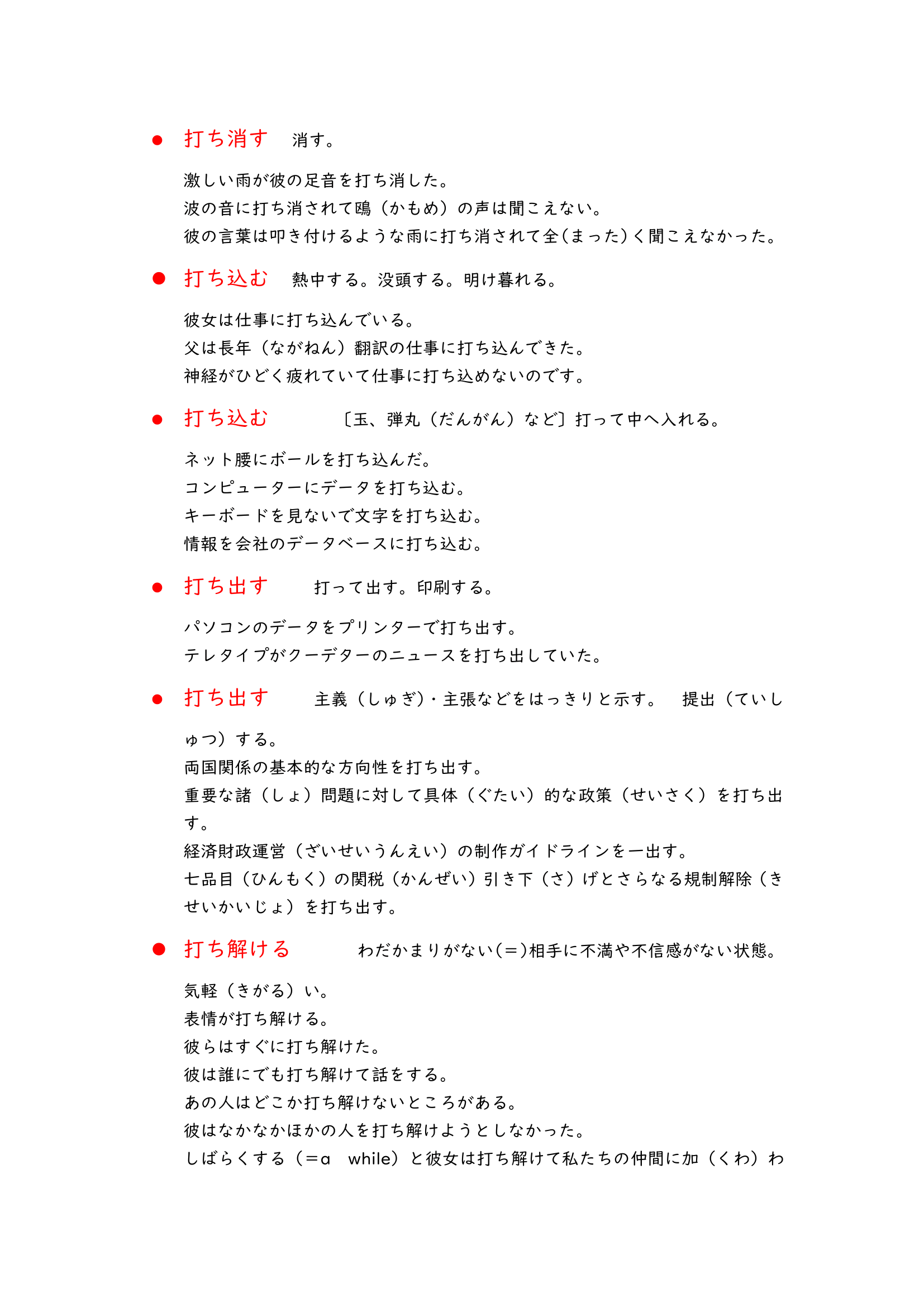 Learning these basic compound verbs has been crucial for me. Over the past few years, I struggled to find good dictionaries for them. However, last July, I stumbled upon a really old book edited by Chinese language professors, which has been a lifesaver. Nowadays, it’s hard to find such resources online. So, I typed them all into Word and now I’m sharing them here with you. As you go through these lists, you’ll notice they’re mostly in Japanese, with a few English explanations that I’ve tweaked to make them easier to understand.