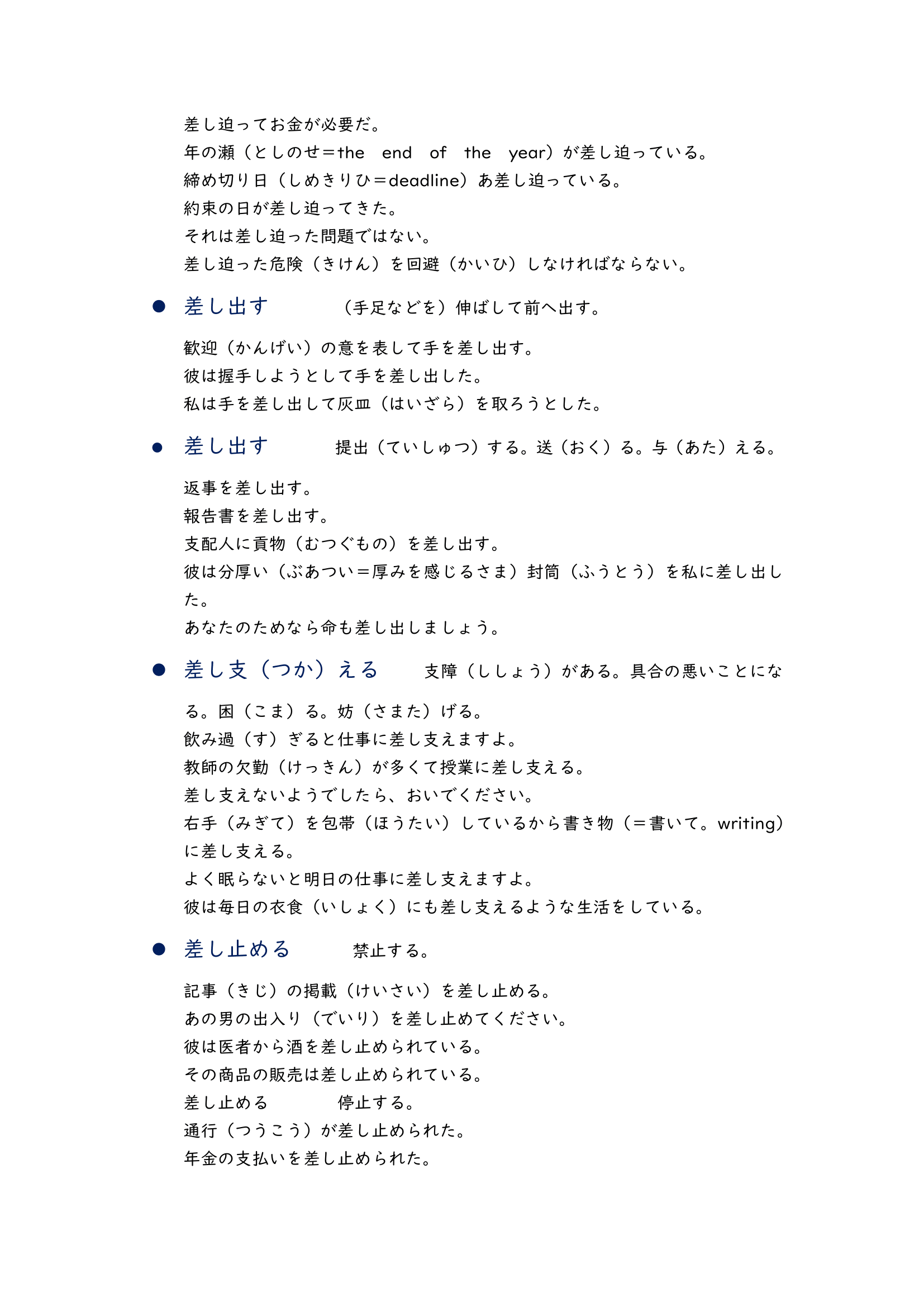 Learning these basic compound verbs has been crucial for me. Over the past few years, I struggled to find good dictionaries for them. However, last July, I stumbled upon a really old book edited by Chinese language professors, which has been a lifesaver. Nowadays, it’s hard to find such resources online. So, I typed them all into Word and now I’m sharing them here with you. As you go through these lists, you’ll notice they’re mostly in Japanese, with a few English explanations that I’ve tweaked to make them easier to understand.