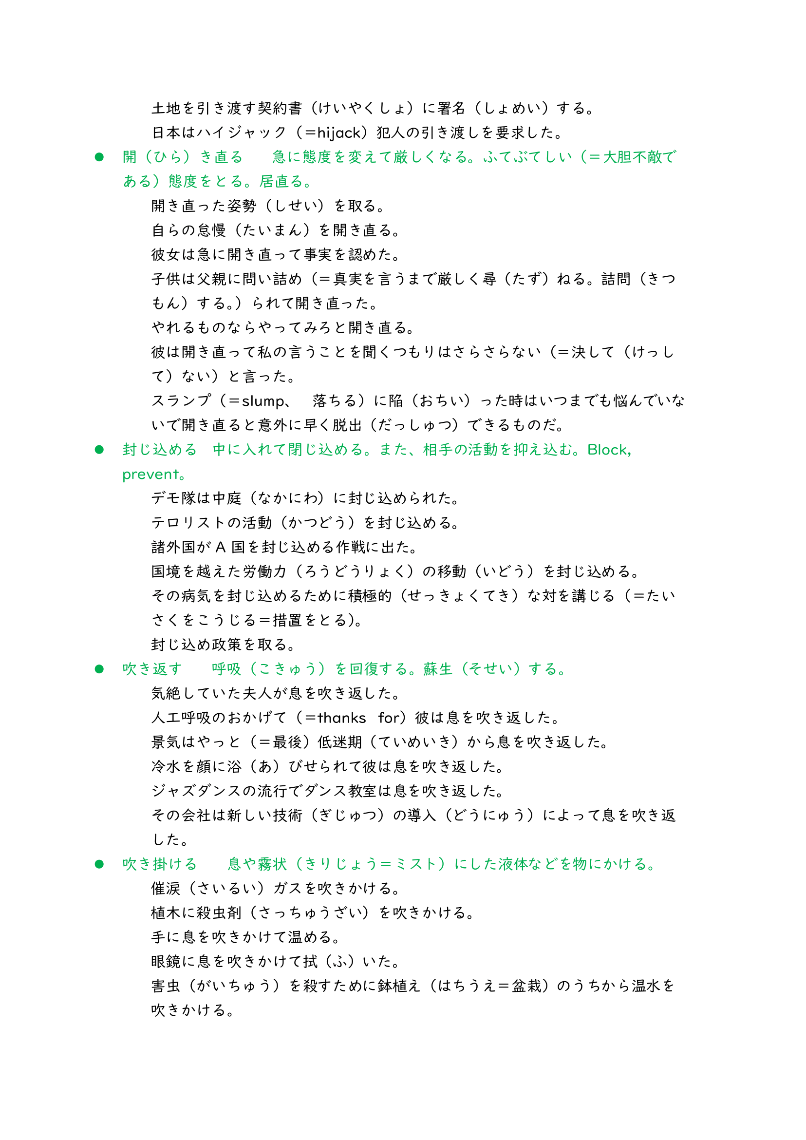 Learning these basic compound verbs has been crucial for me. Over the past few years, I struggled to find good dictionaries for them. However, last July, I stumbled upon a really old book edited by Chinese language professors, which has been a lifesaver. Nowadays, it’s hard to find such resources online. So, I typed them all into Word and now I’m sharing them here with you. As you go through these lists, you’ll notice they’re mostly in Japanese, with a few English explanations that I’ve tweaked to make them easier to understand.