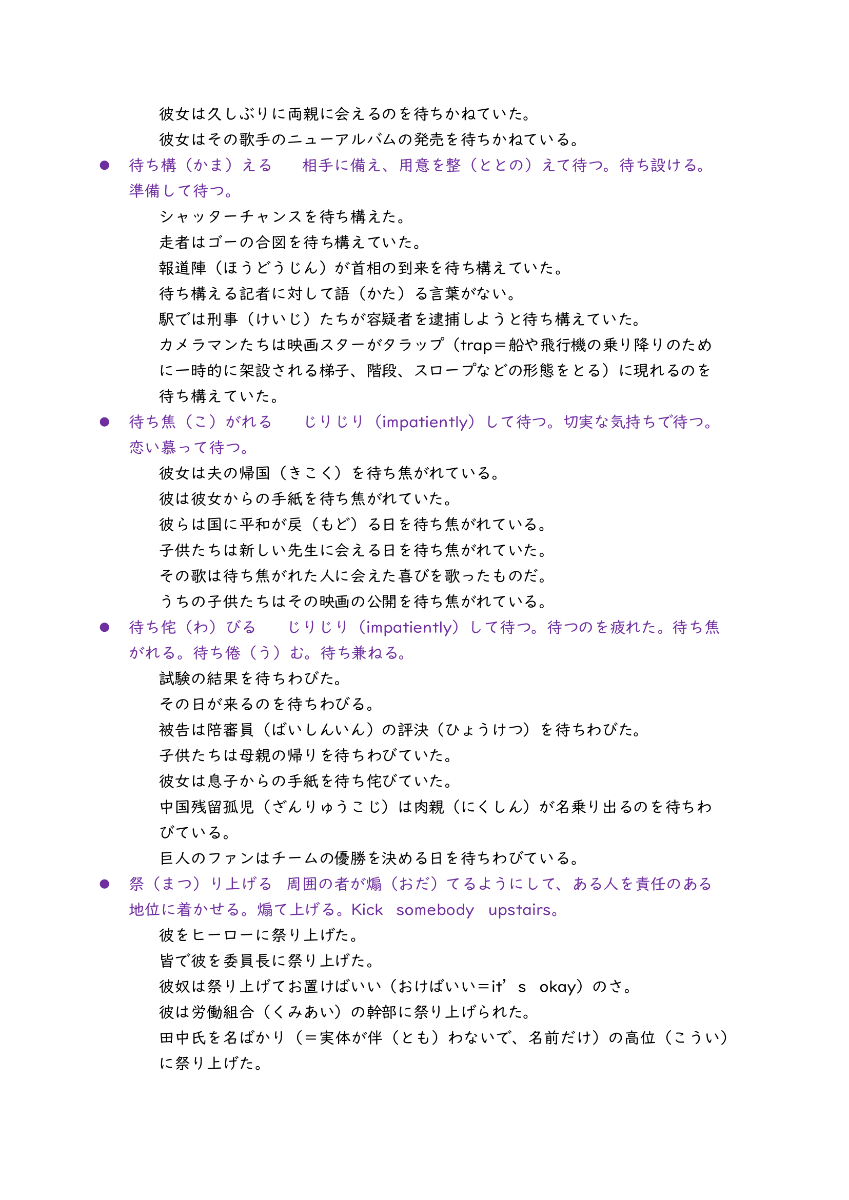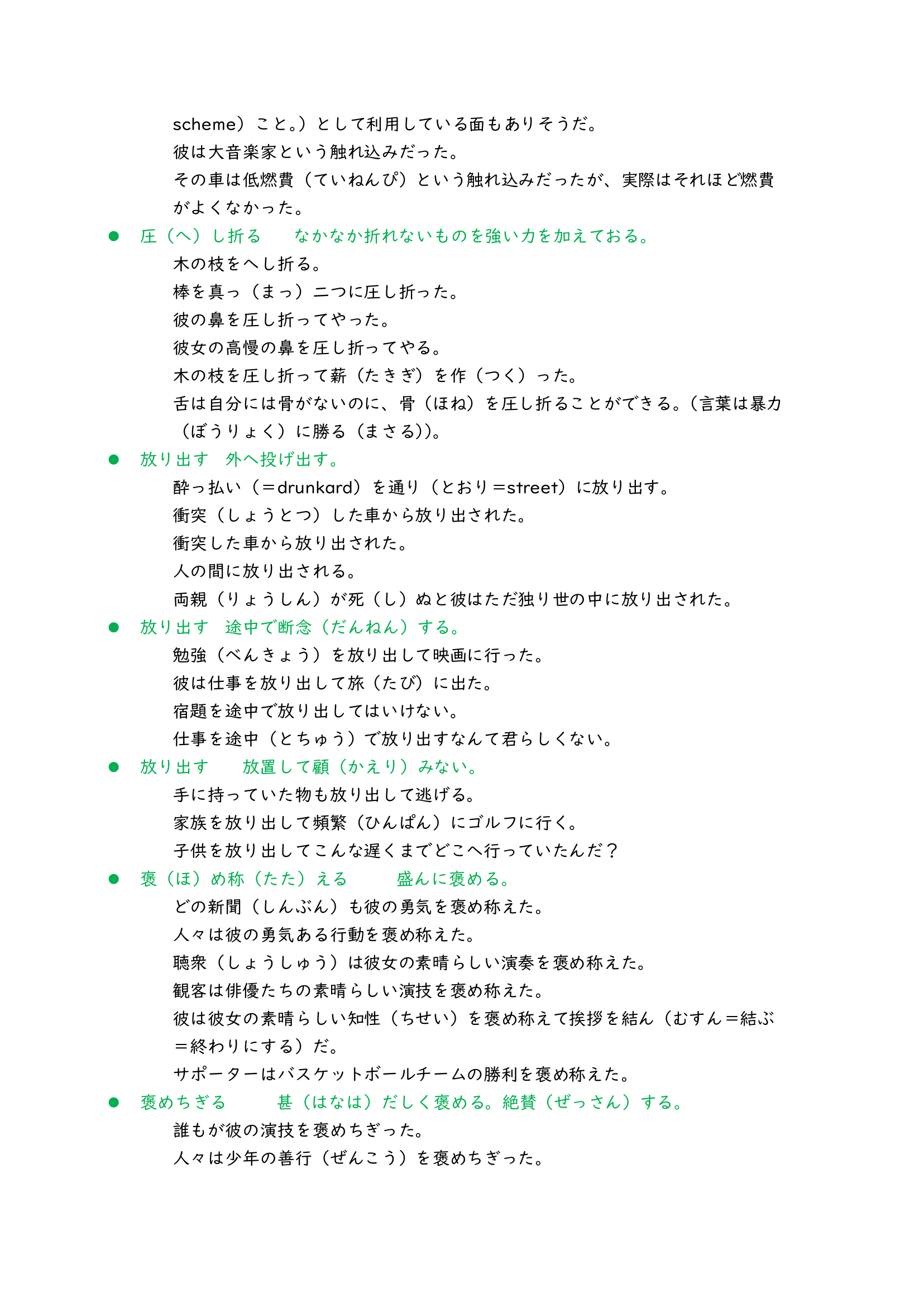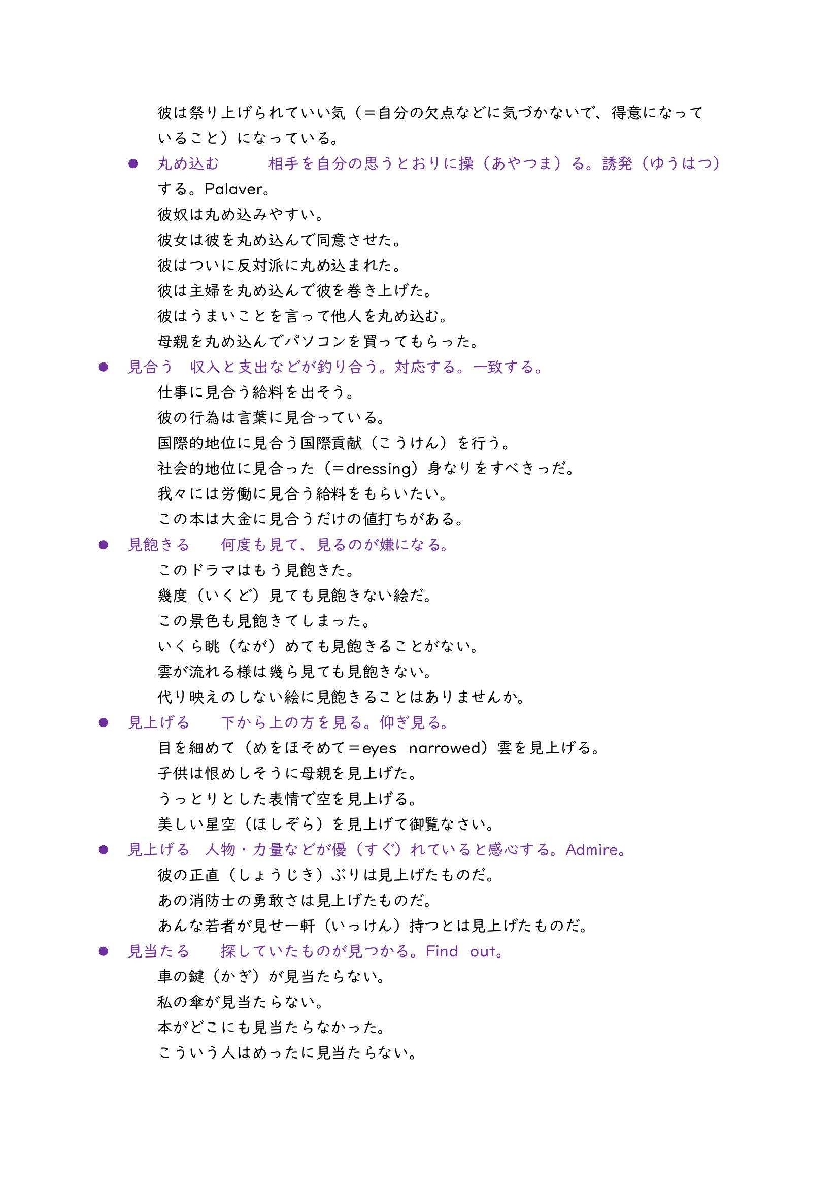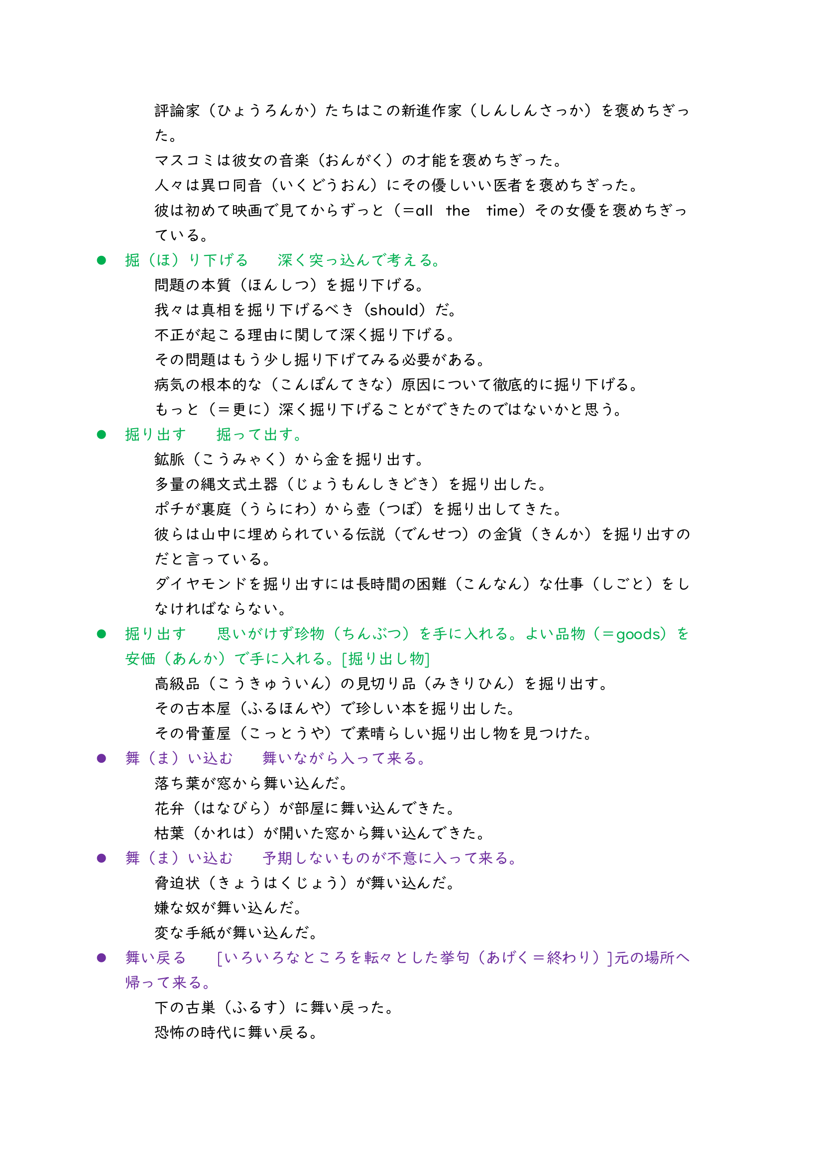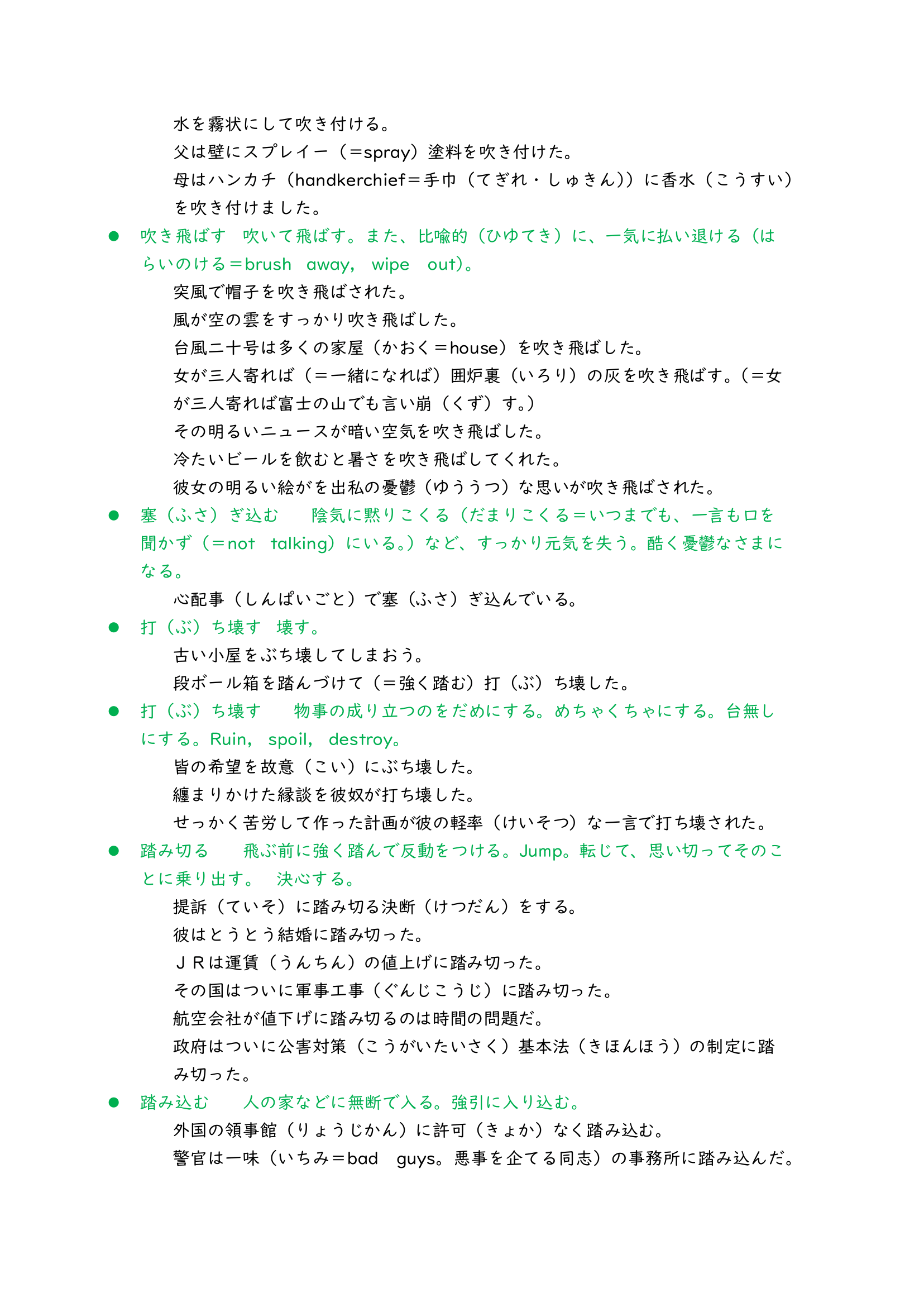 These vocabulary lists are about Japanese compound verbs. When you learn Japanese you would see a lot of verbs like “i” verbs or “u” verbs, they are basic, but if you read more Japanese materials there would be a lot of compound verbs which look like “光り輝く”,”投げ入れる” and “書き上げる”.