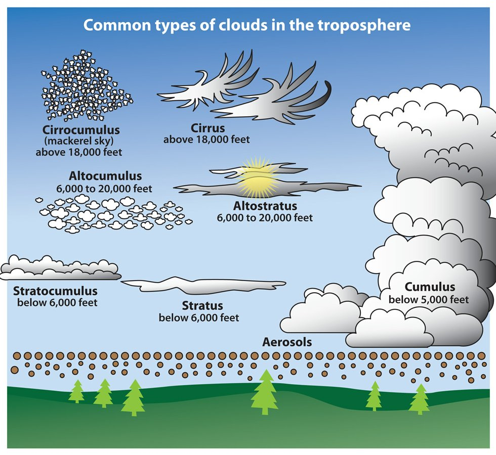 The three main cloud types are stratus, cumulus, and cirrus. Stratus clouds form layers, or smooth,