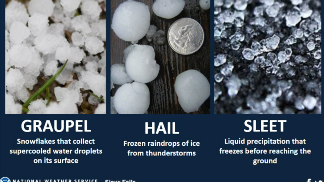 Air temperature determines whether water forms rain, snow, sleet, or hail—the four main types of precipitation.