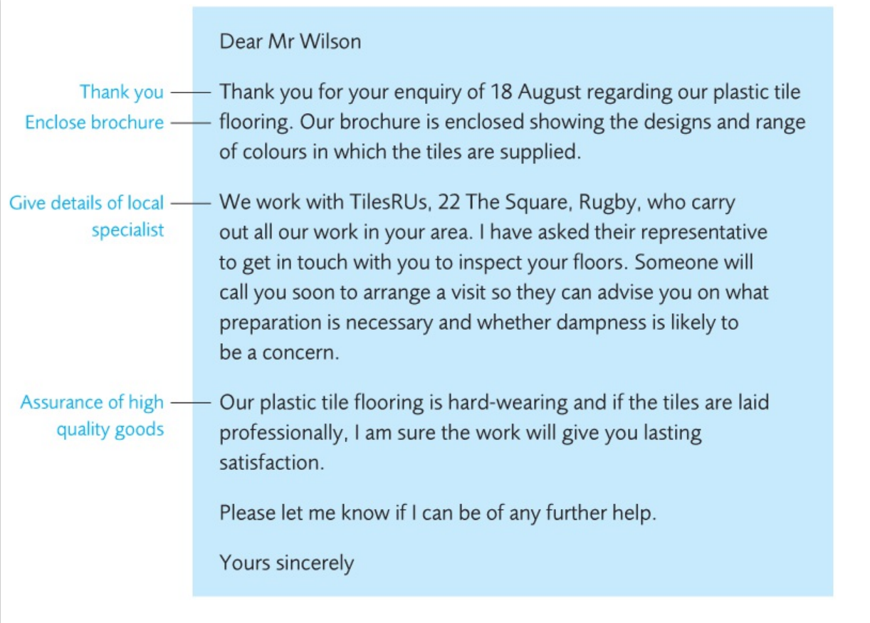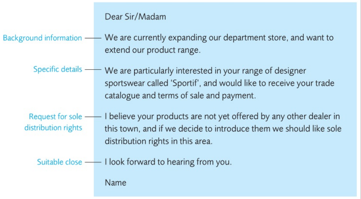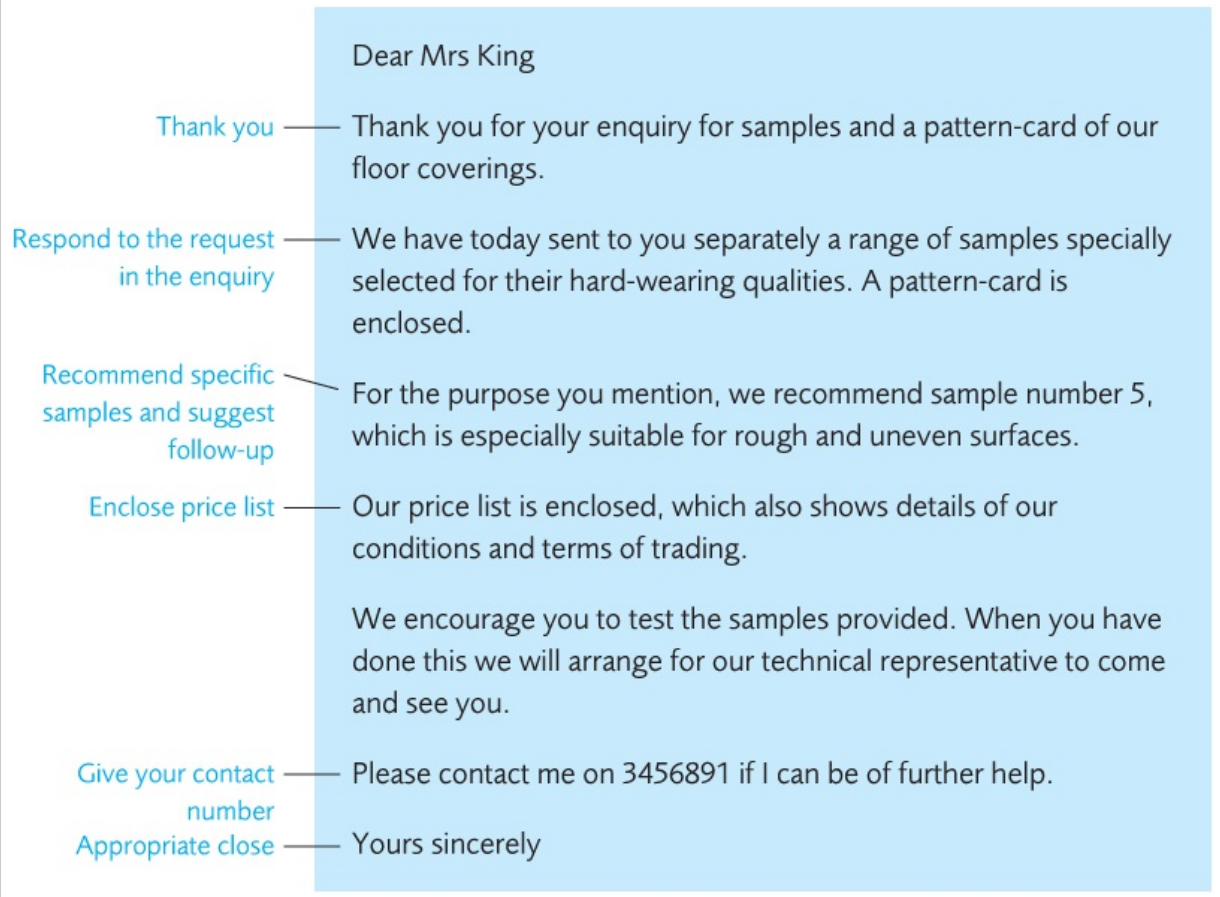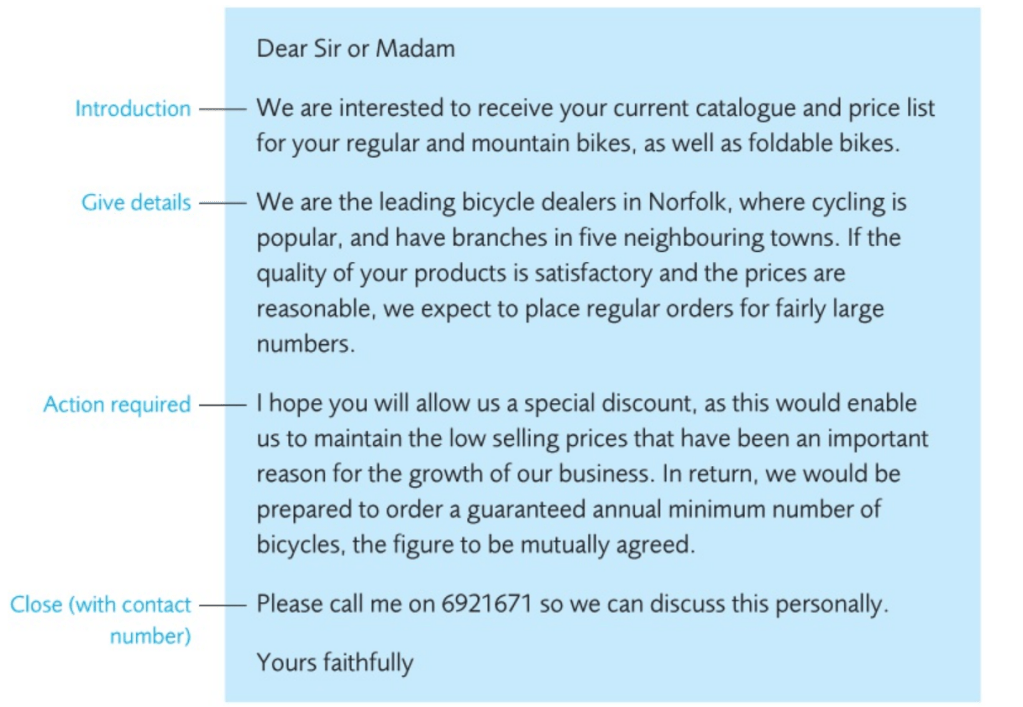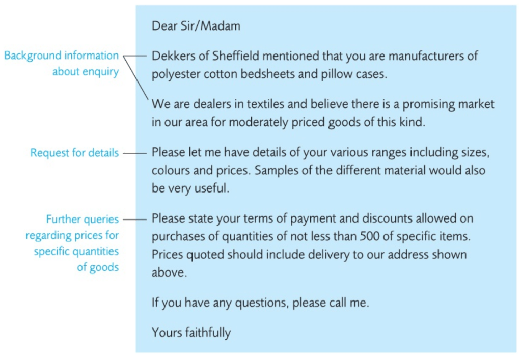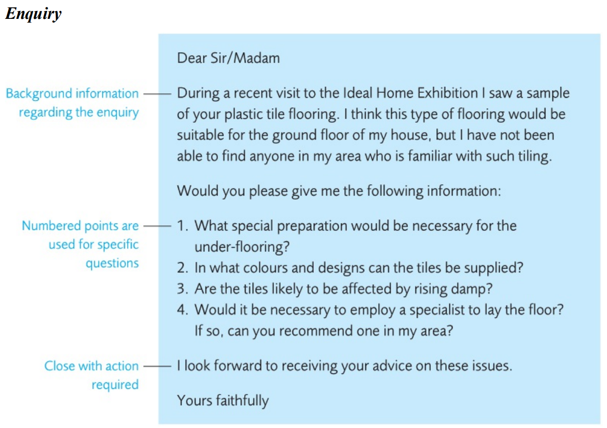 An enquiry with numbered points