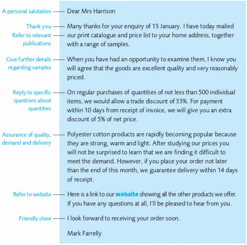 I am mailing to you today a hard copy of our catalogue and price list. You can also find full details, including terms and conditions, on our website.