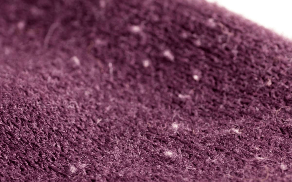 lint: short, fine fibers that separate from the surface of cloth or yarn, especially during processing.