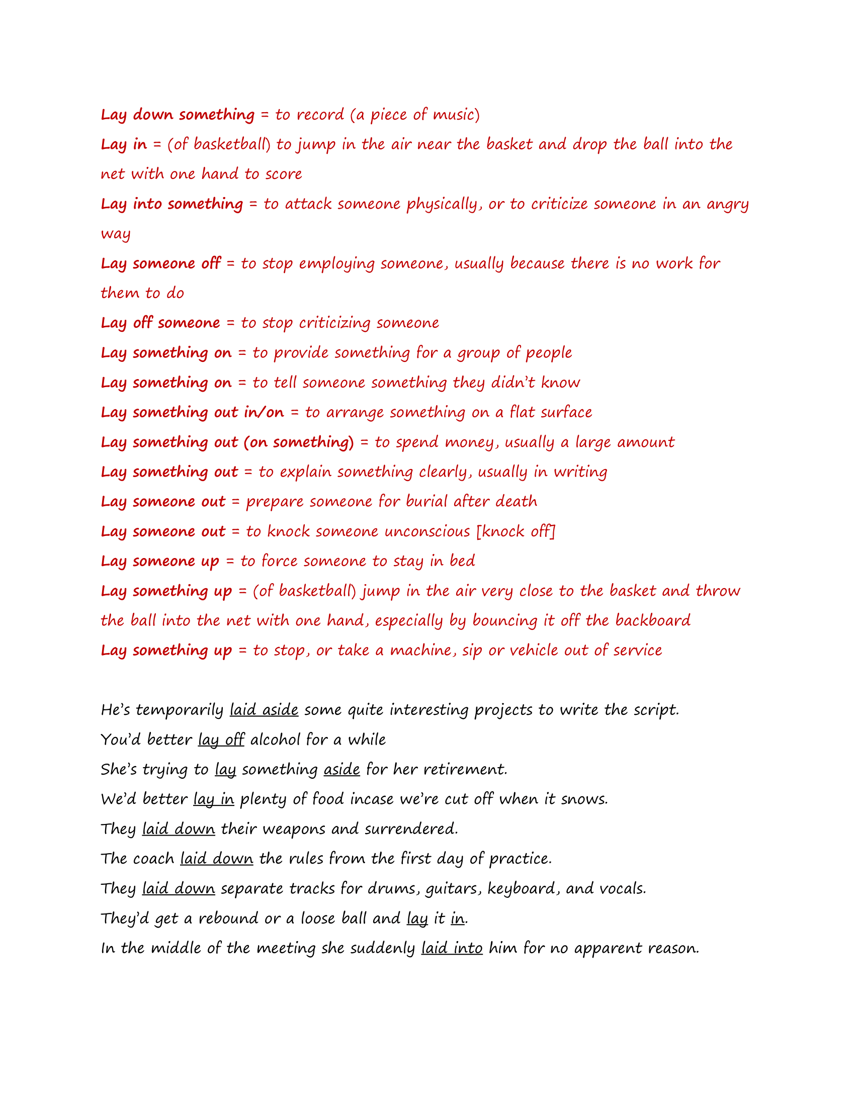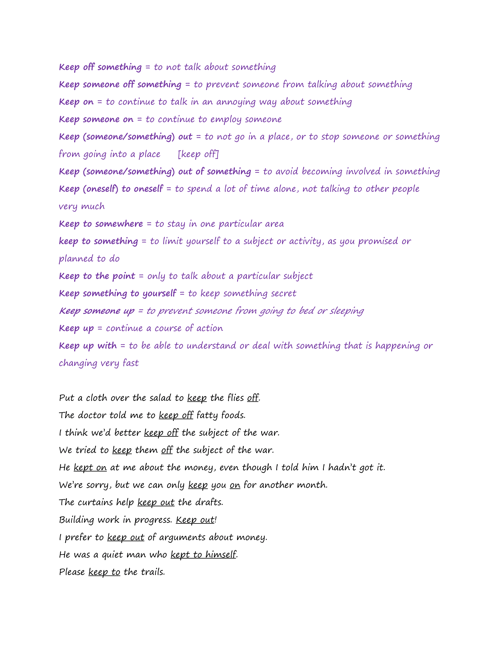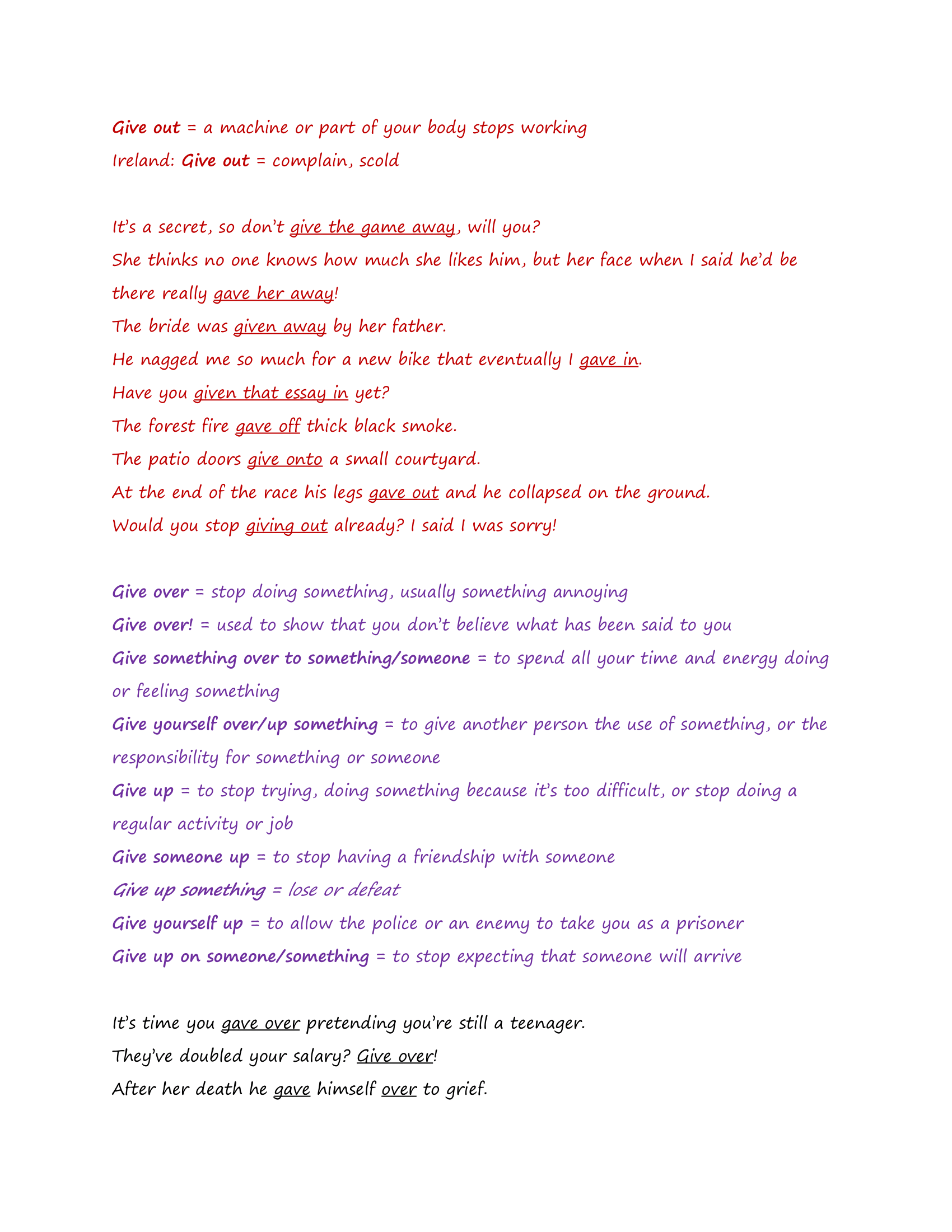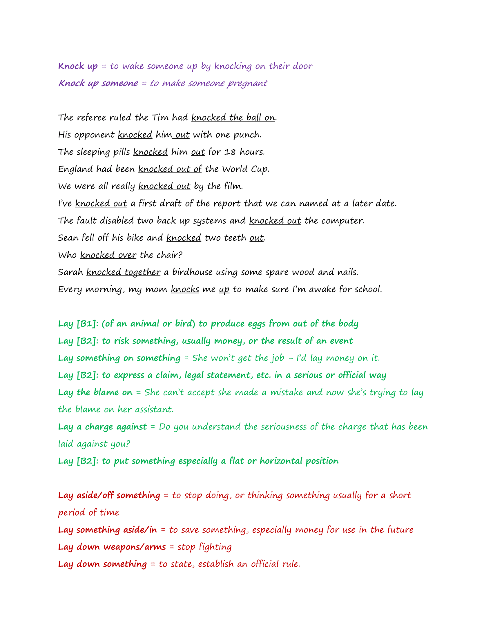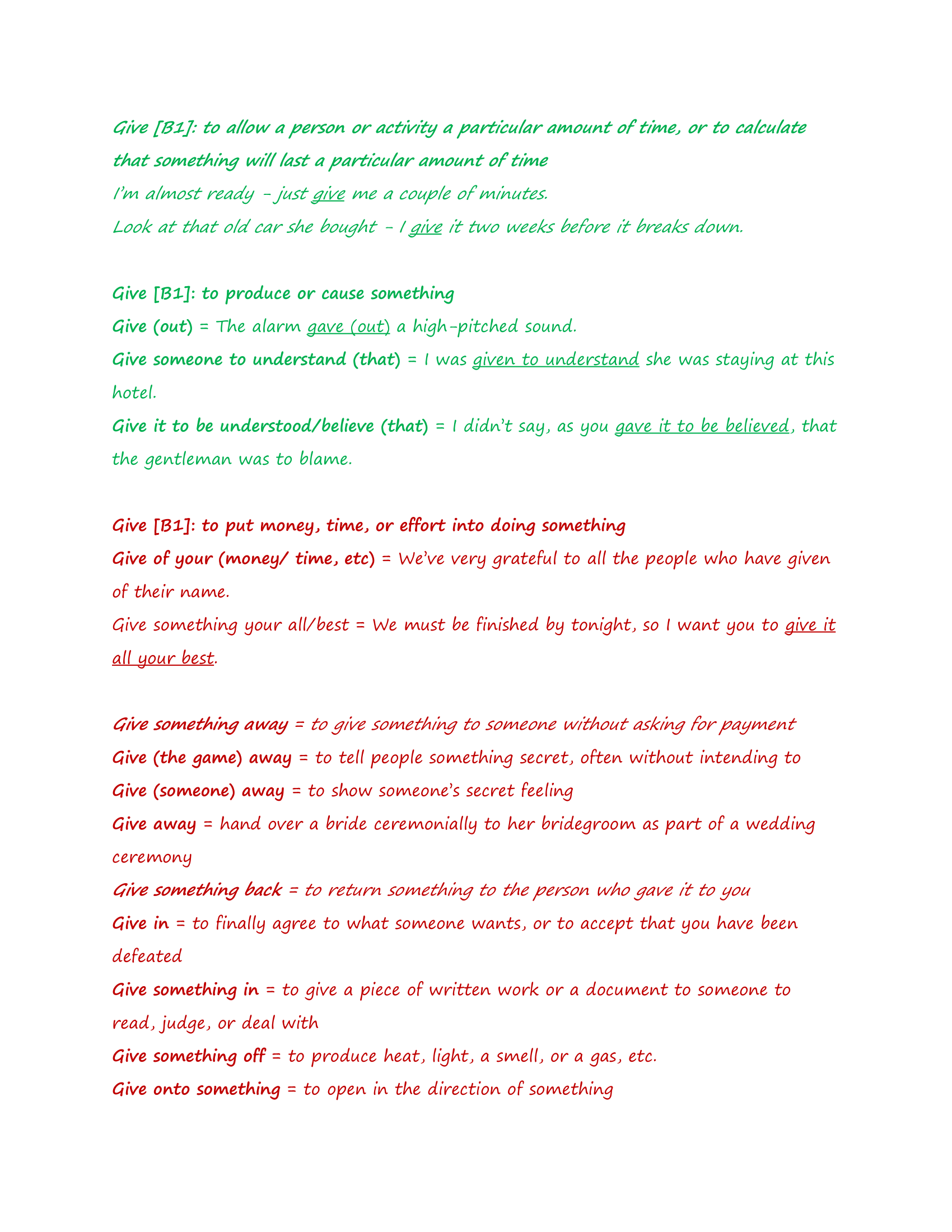 The important thing to remember is that a multi-word verb is still a verb. ‘Get’ is a verb. ‘Get up’, is also a verb, a different verb. ‘Get’ and ‘get up’ are two different verbs. They do not have the same meaning. So you should treat each multi-word verb verb as a separate verb and learn it like any other verb. Look at these examples. You can see that there are three types of multi-word verbs: