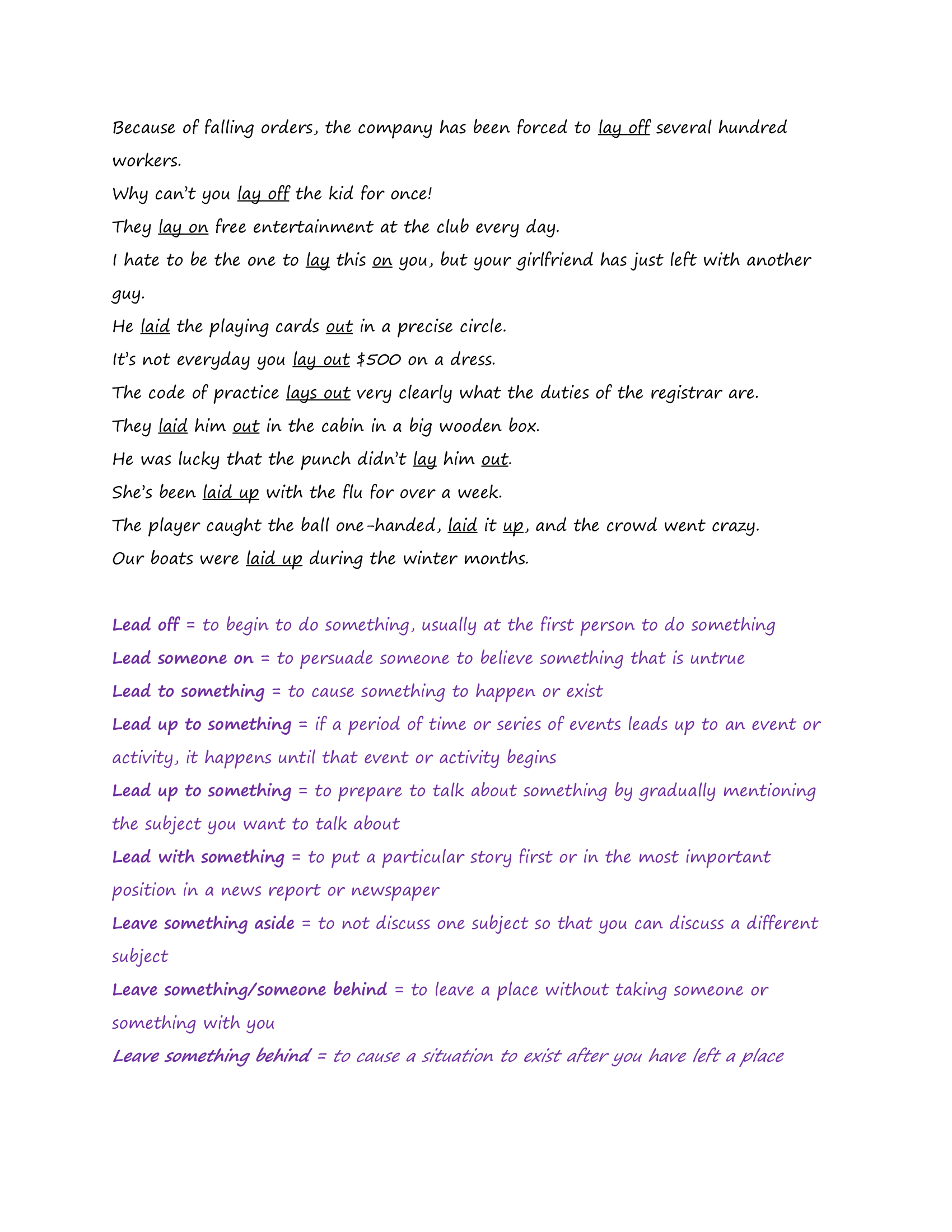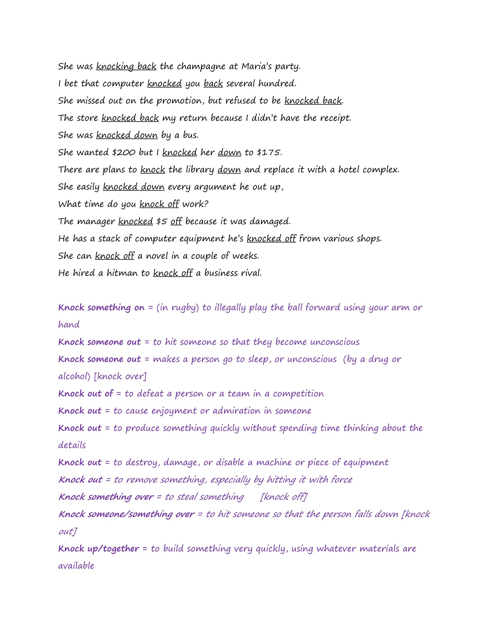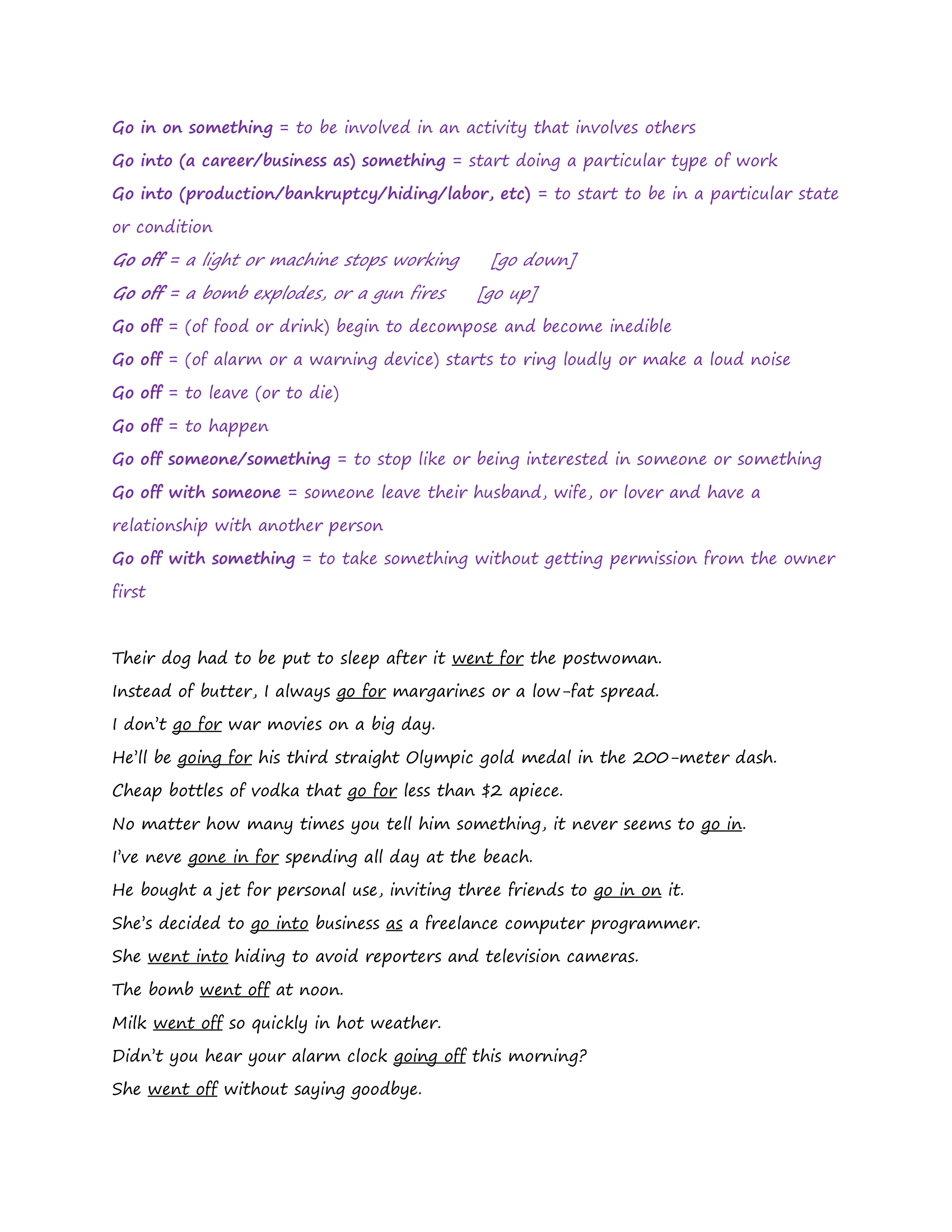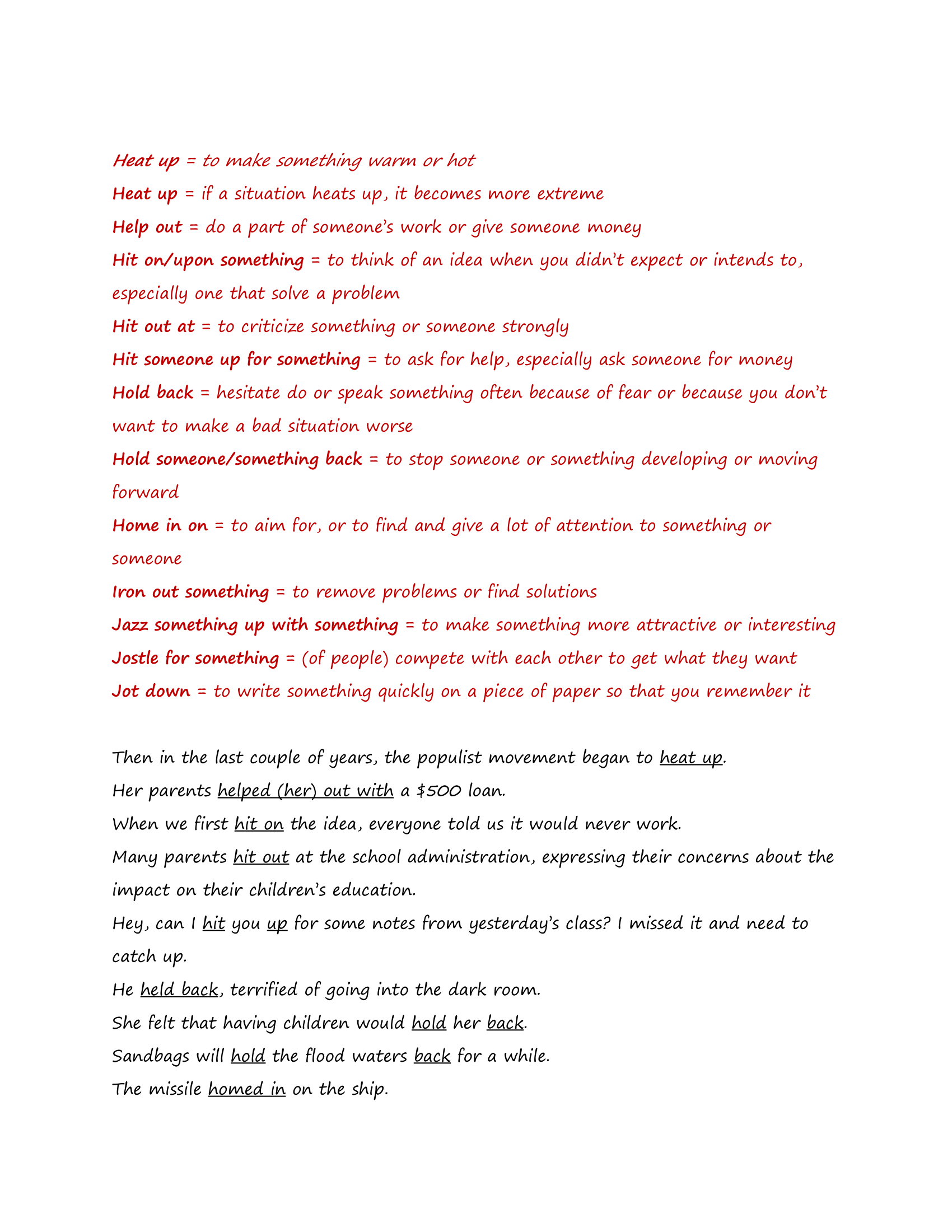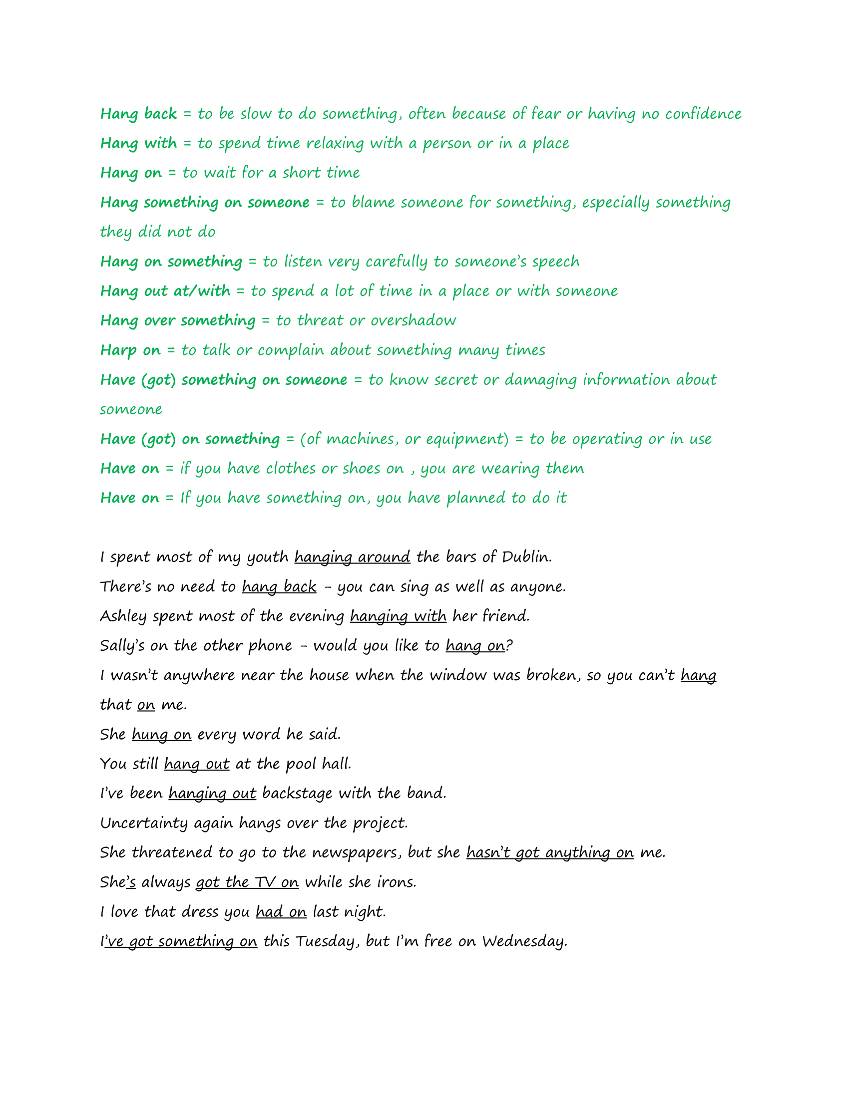 Phrasal verbs are part of a large group of verbs called ‘multi-word verbs’. Phrasal verbs and other multi-word verbs, including phrasal verbs, are very common, especially in Spoken English. A multi-word verb is a verb like ‘pick up’, ‘turn on’ or ’get on with’. For convenience, many people refer to all multi-word verbs as phrasal verbs. These verbs consist of a basic verb + another word or words. The other word(s) can be prepositions and/or adverbs. The two or three words that make up multi-word verbs form a short ‘phrase’ – which is why these verbs are often called ‘phrasal verbs’.