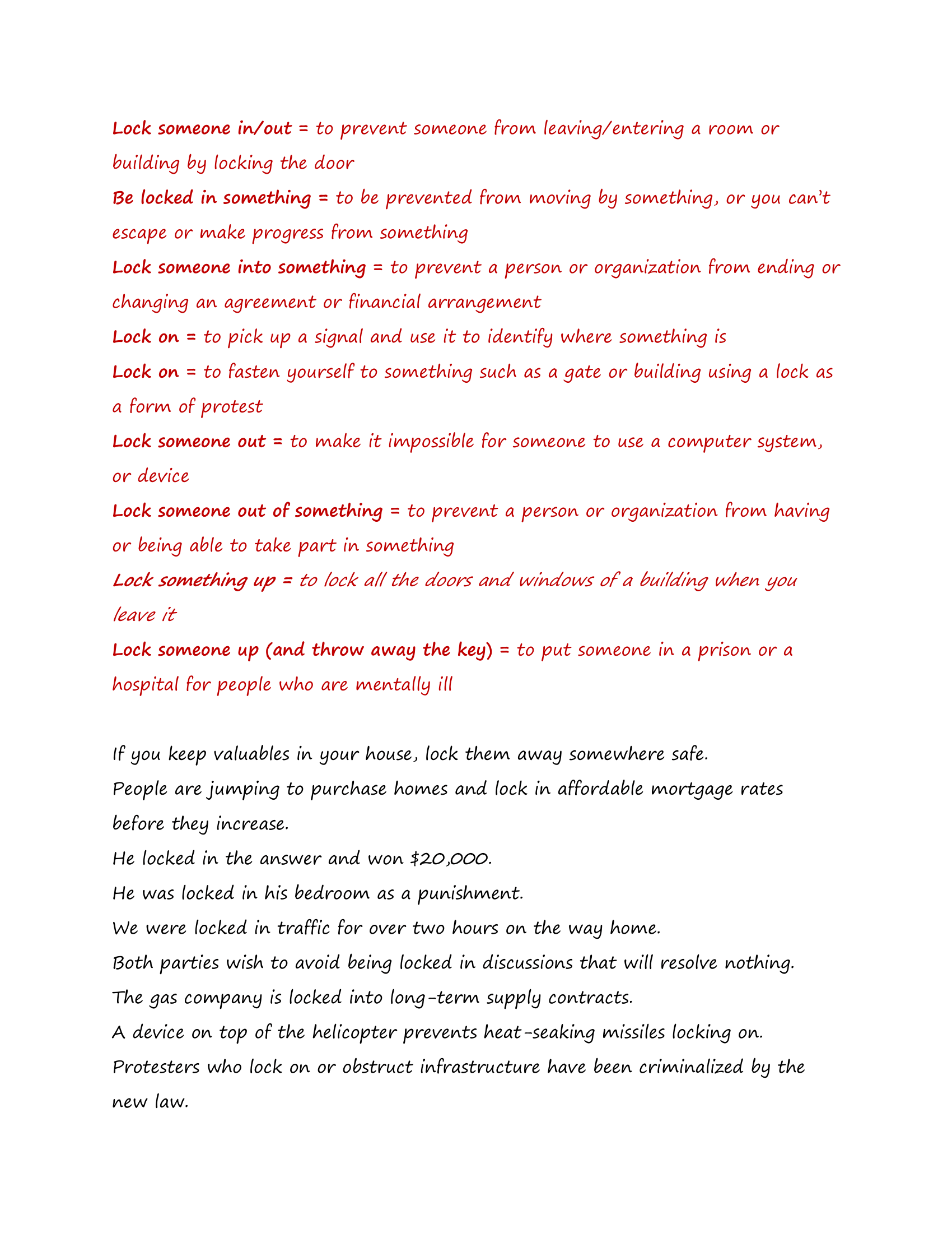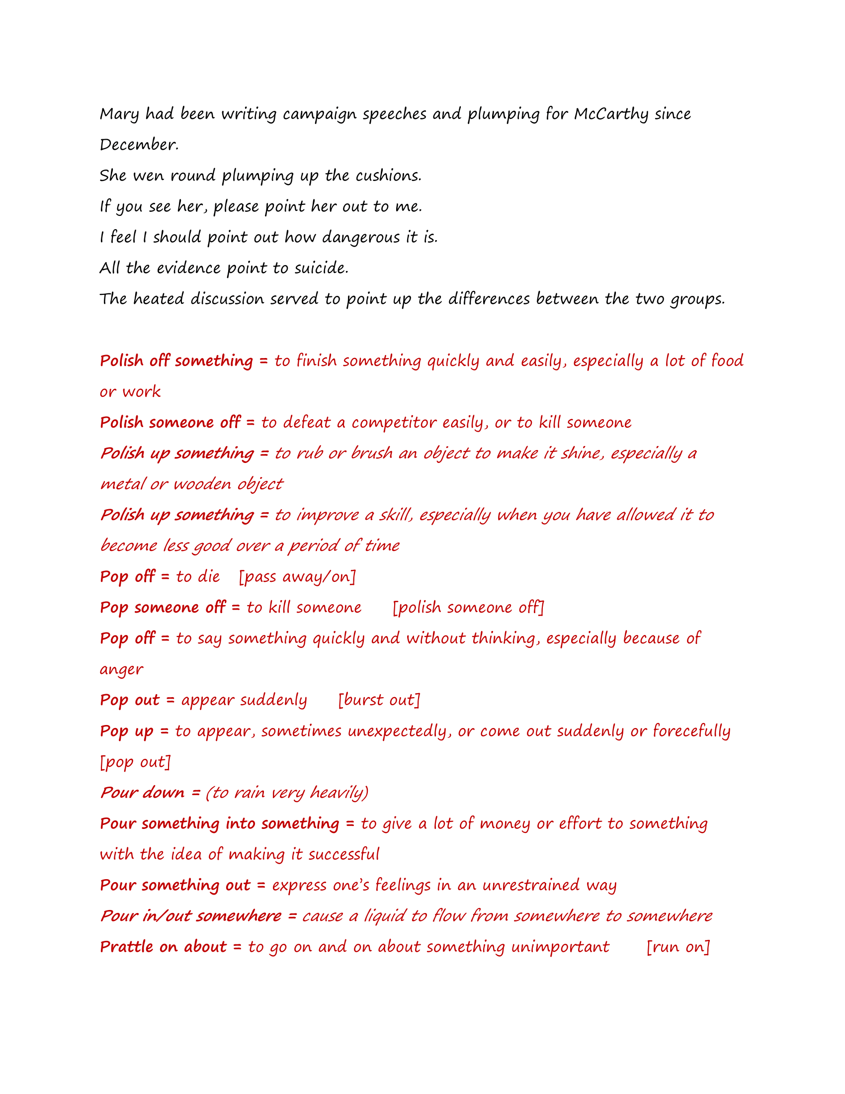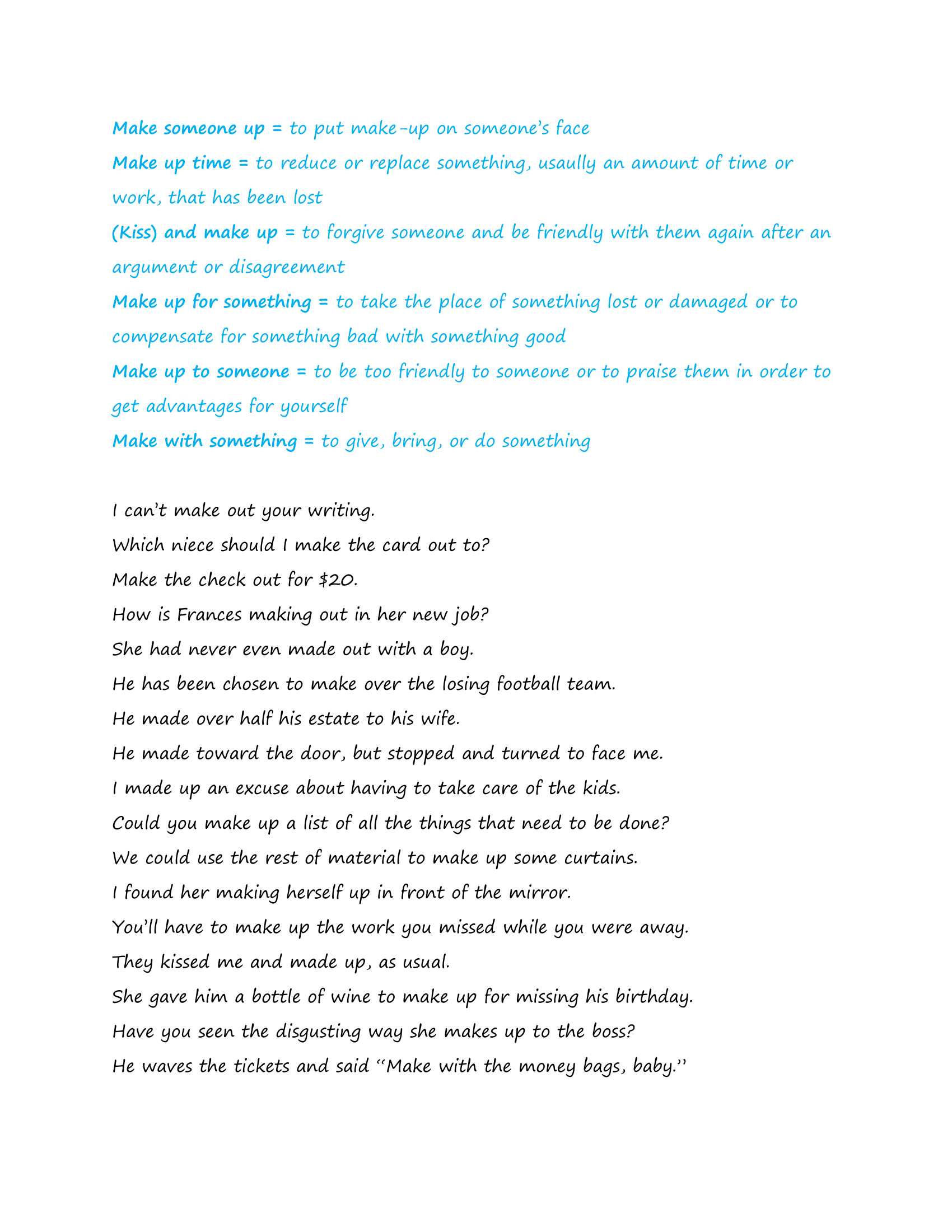 The important thing to remember is that a multi-word verb is still a verb. ‘Get’ is a verb. ‘Get up’, is also a verb, a different verb. ‘Get’ and ‘get up’ are two different verbs. They do not have the same meaning. So you should treat each multi-word verb verb as a separate verb and learn it like any other verb. Look at these examples. You can see that there are three types of multi-word verbs: