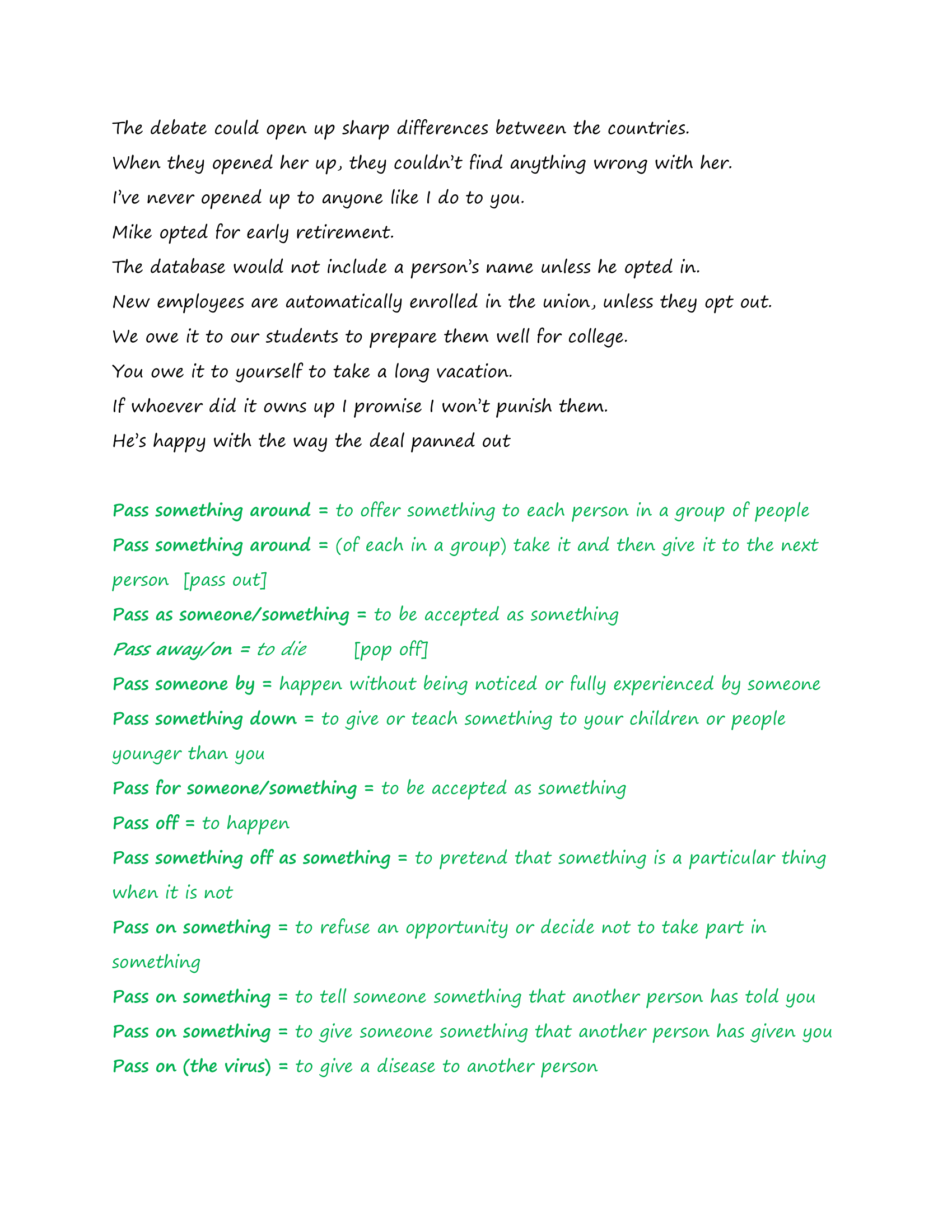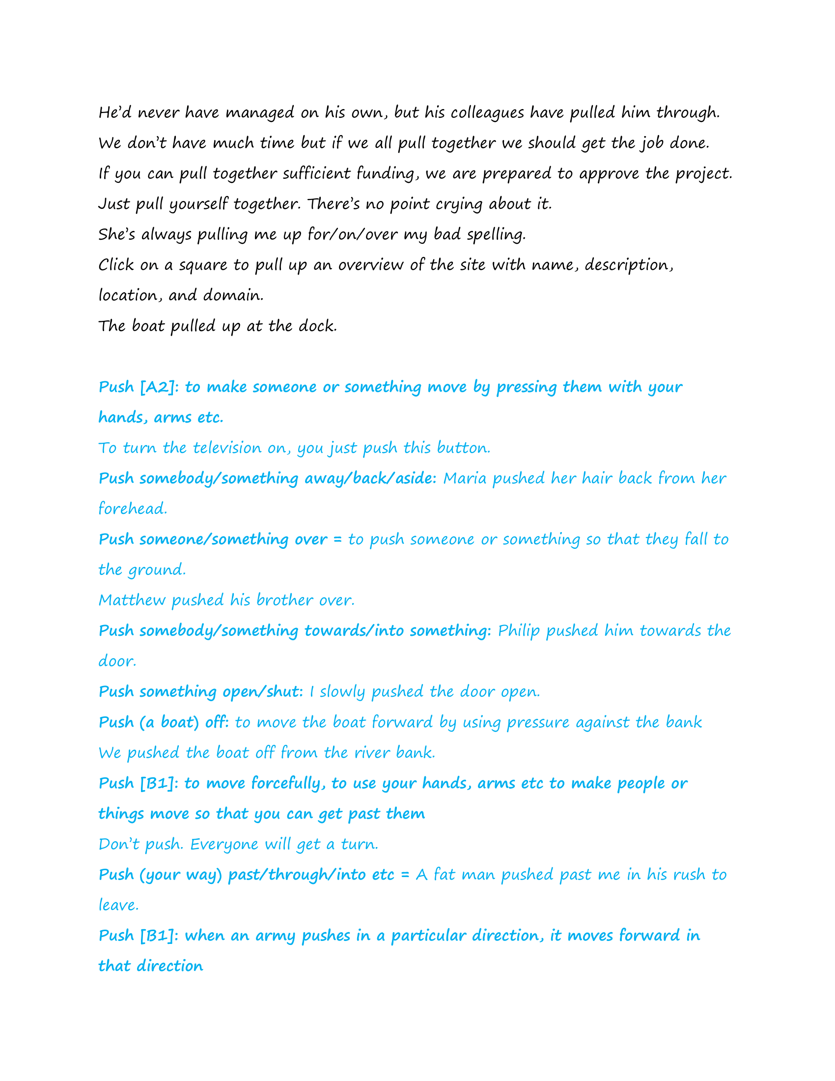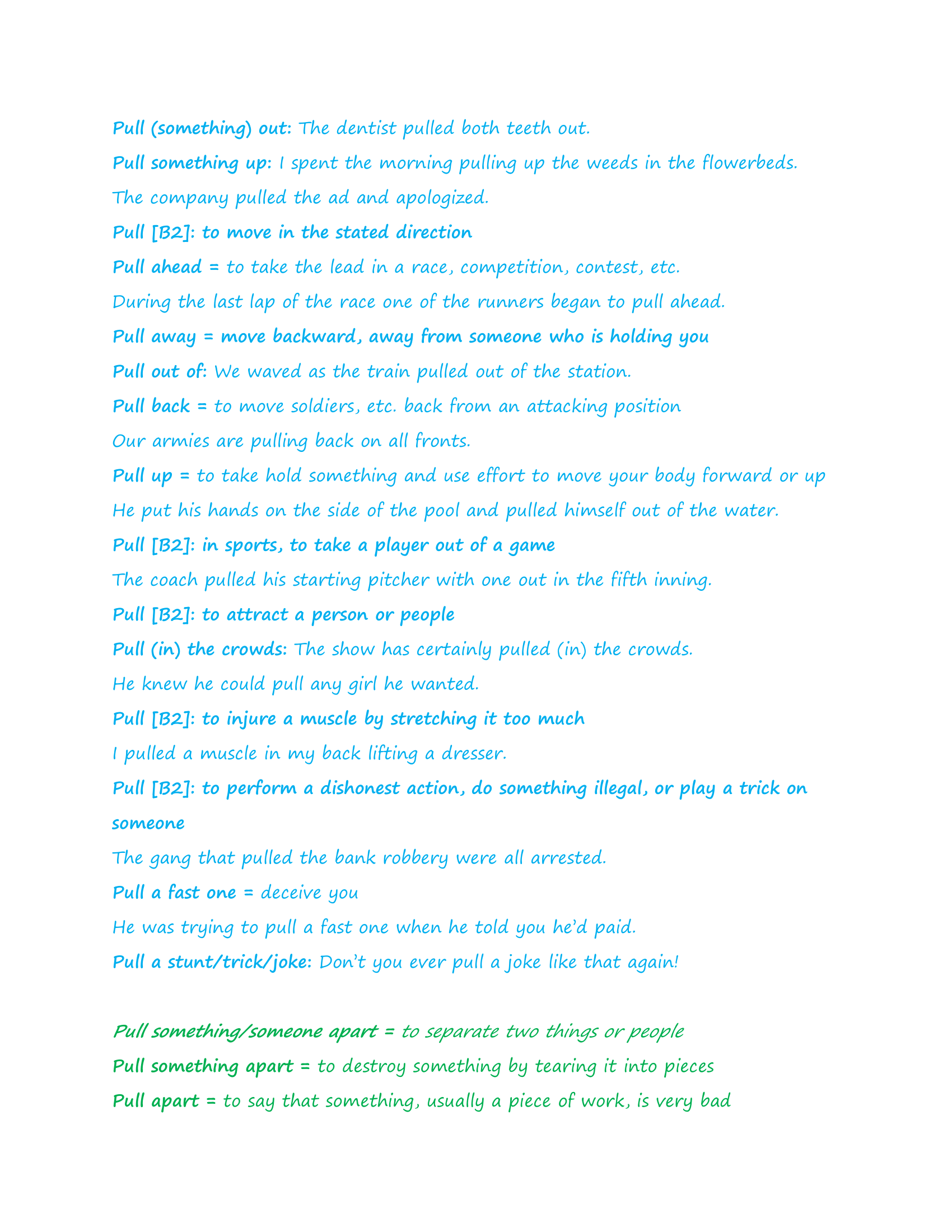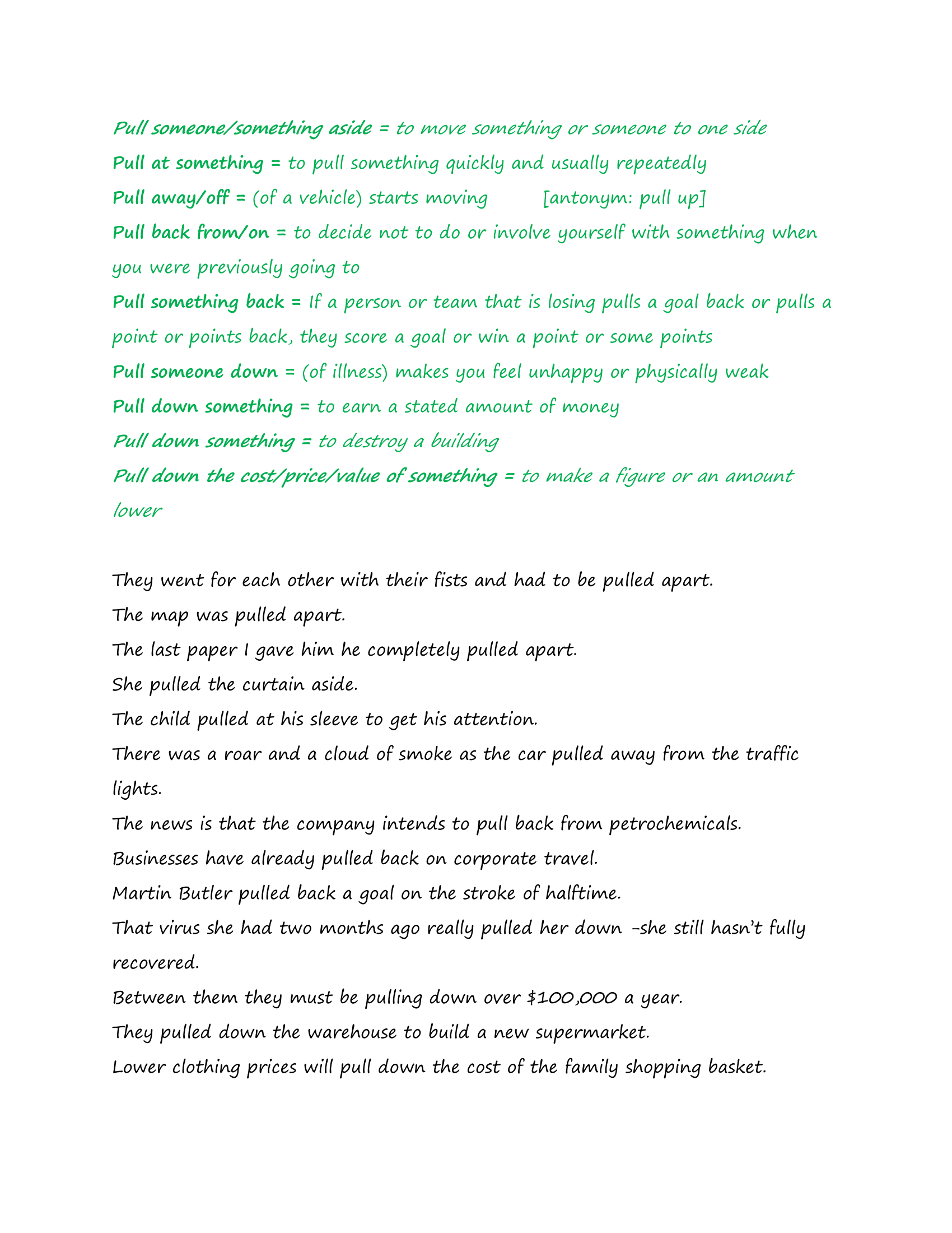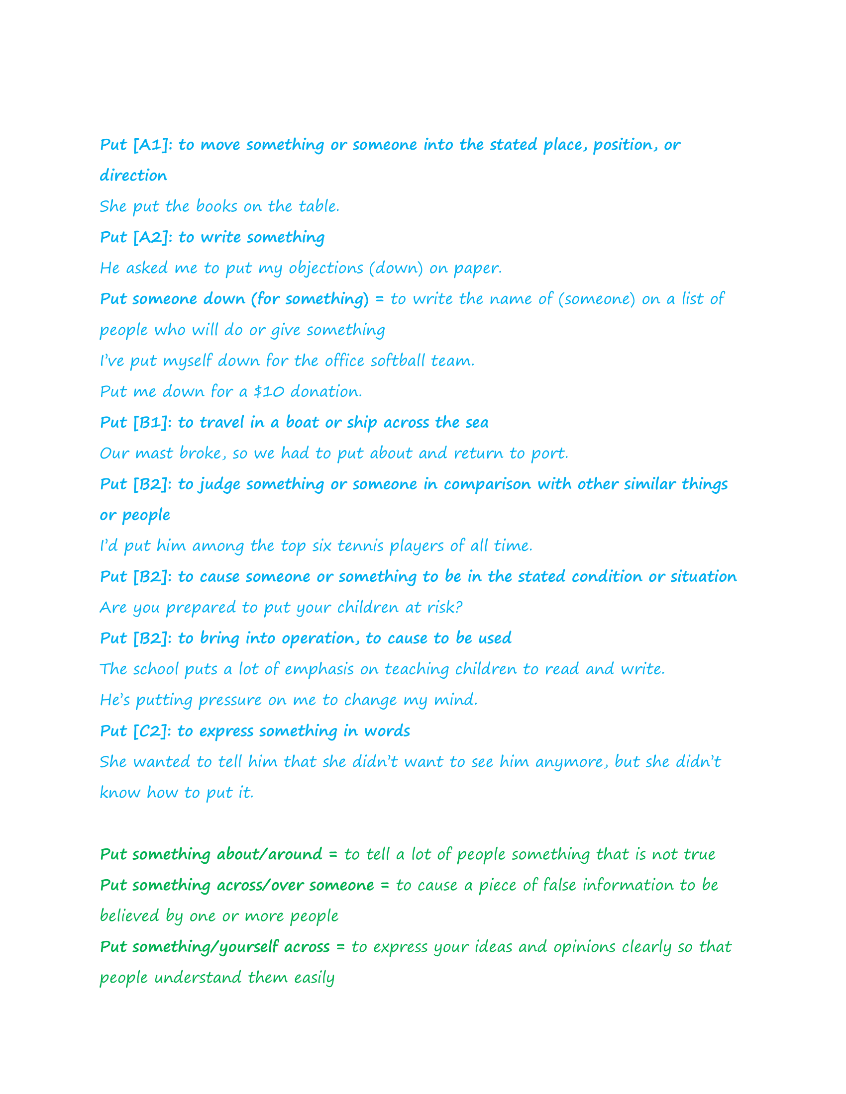 Phrasal verbs are part of a large group of verbs called ‘multi-word verbs’. Phrasal verbs and other multi-word verbs, including phrasal verbs, are very common, especially in Spoken English. A multi-word verb is a verb like ‘pick up’, ‘turn on’ or ’get on with’. For convenience, many people refer to all multi-word verbs as phrasal verbs. These verbs consist of a basic verb + another word or words. The other word(s) can be prepositions and/or adverbs. The two or three words that make up multi-word verbs form a short ‘phrase’ – which is why these verbs are often called ‘phrasal verbs’.
