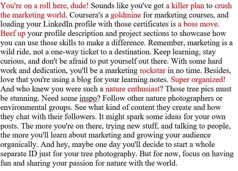 Moreover, if a friend shared many of their thoughts or plans with me in detail, I probably wouldn’t respond with such detailed encouragement or share my experiences and recommendations. I might just reply with a single sentence, seeming a kind of unconcerned. But this is simply my natural reaction based on my real-life experiences in my native language.