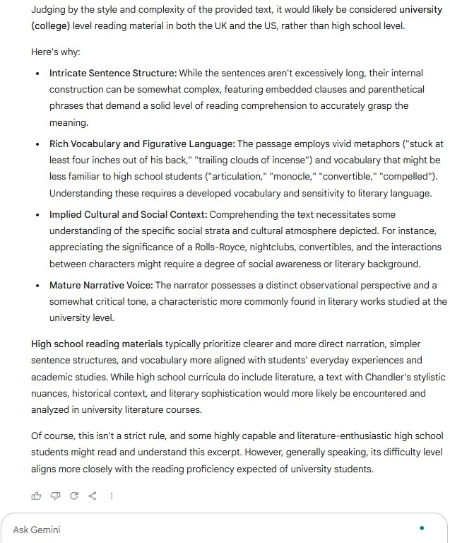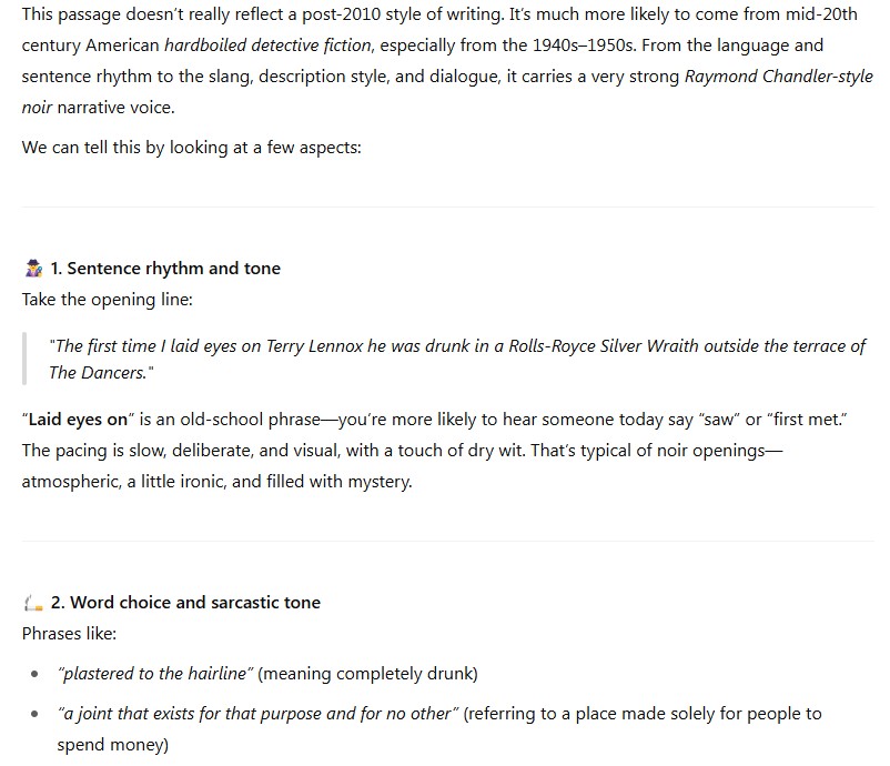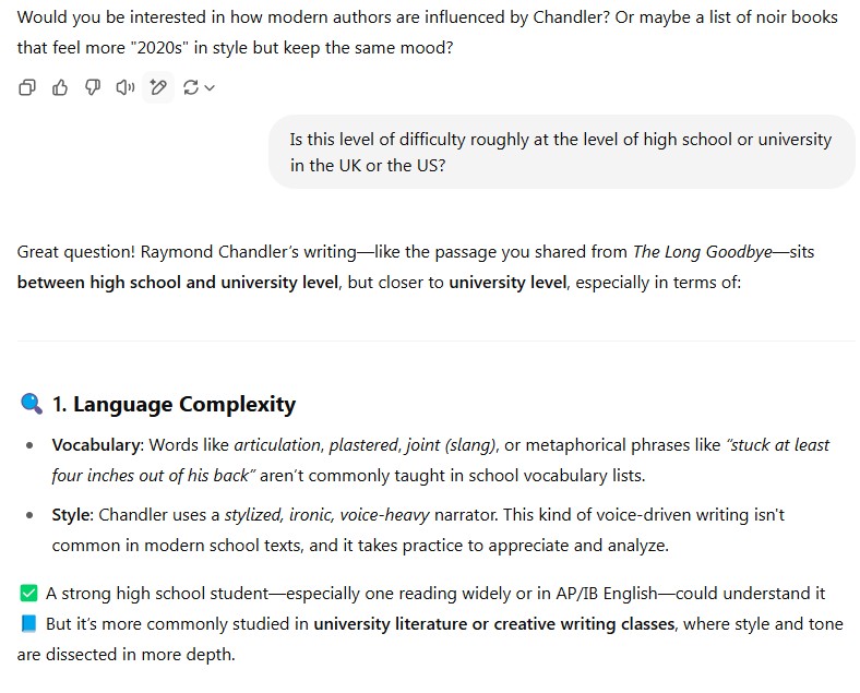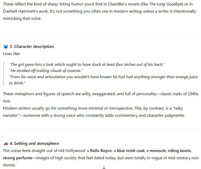 Today, I talked to the AI about my thoughts after trying to read a bit of The Long Goodbye by Chandler.