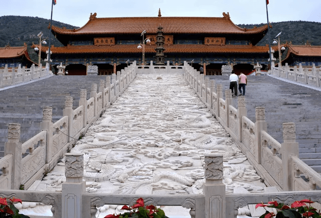 Then there was Jile Temple. If you search “Jile Temple” online, it will probably show the one in Harbin. But the Jile Temple in Guangling is extremely grand. It immediately reminded me of the Forbidden City. I’m not sure whether the structure or the stair design is actually similar, but that was the feeling I had. The Buddha statue inside the main hall was the largest one I saw that day. I’d guess it’s around ten meters tall. The wall reliefs with many Buddhas were also incredibly detailed. Since it’s a temple, taking photos casually isn’t really appropriate, but the visual impact was honestly overwhelming.